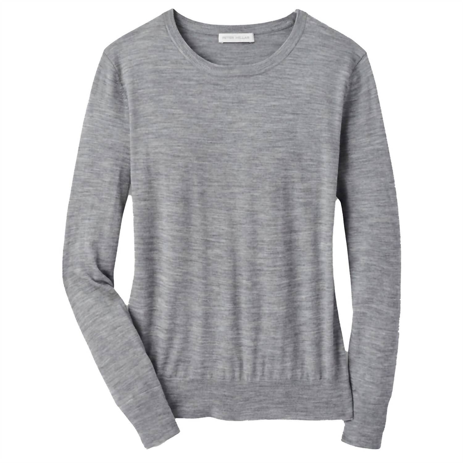 The ultimate go-to sweater, expertly crafted to provide the perfect combination of warmth and style. Its classic design and soft fabric make it a must-have addition to your wardrobe. Experience the exceptional comfort of the Women's Excursionist Flex Crew by PETER MILLAR, crafted for elegance and performance in a Gale Grey hue. This long sleeve top is made from luxurious 16.5-micron Merino wool blended with a core performance yarn, ensuring stretch mobility and shape retention. Featuring a classic crewneck, its pull-on style adds ease to your daily wardrobe. Care is simple: hand wash and lay flat to dry.