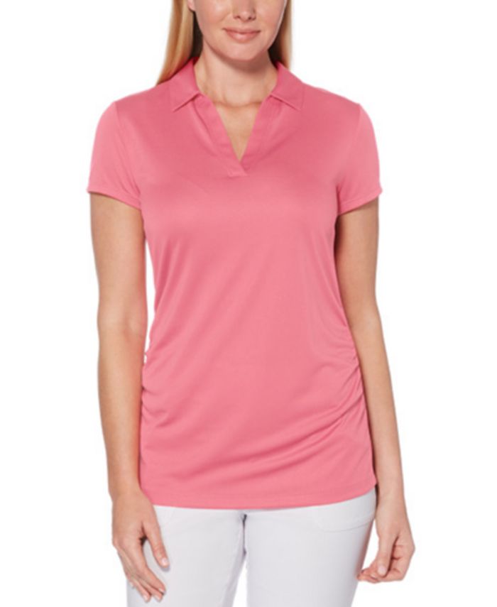 Great for playing long rounds under the hot sun| this ventilated PGA TOUR golf polo will help you stay cool and collected as you make each swing. The ladies' golf polo shirt offers moisture wicking to pull sweat away from your body| helping you stay dry. The mesh fabric features innovative seams for a comfortable range of motion on and off the course| while sun protection helps to guard your skin against UV rays.| Innovative ventilation for ultimate comfort; moisture absorption and control for cooler| drier comfort| Collared V-neck