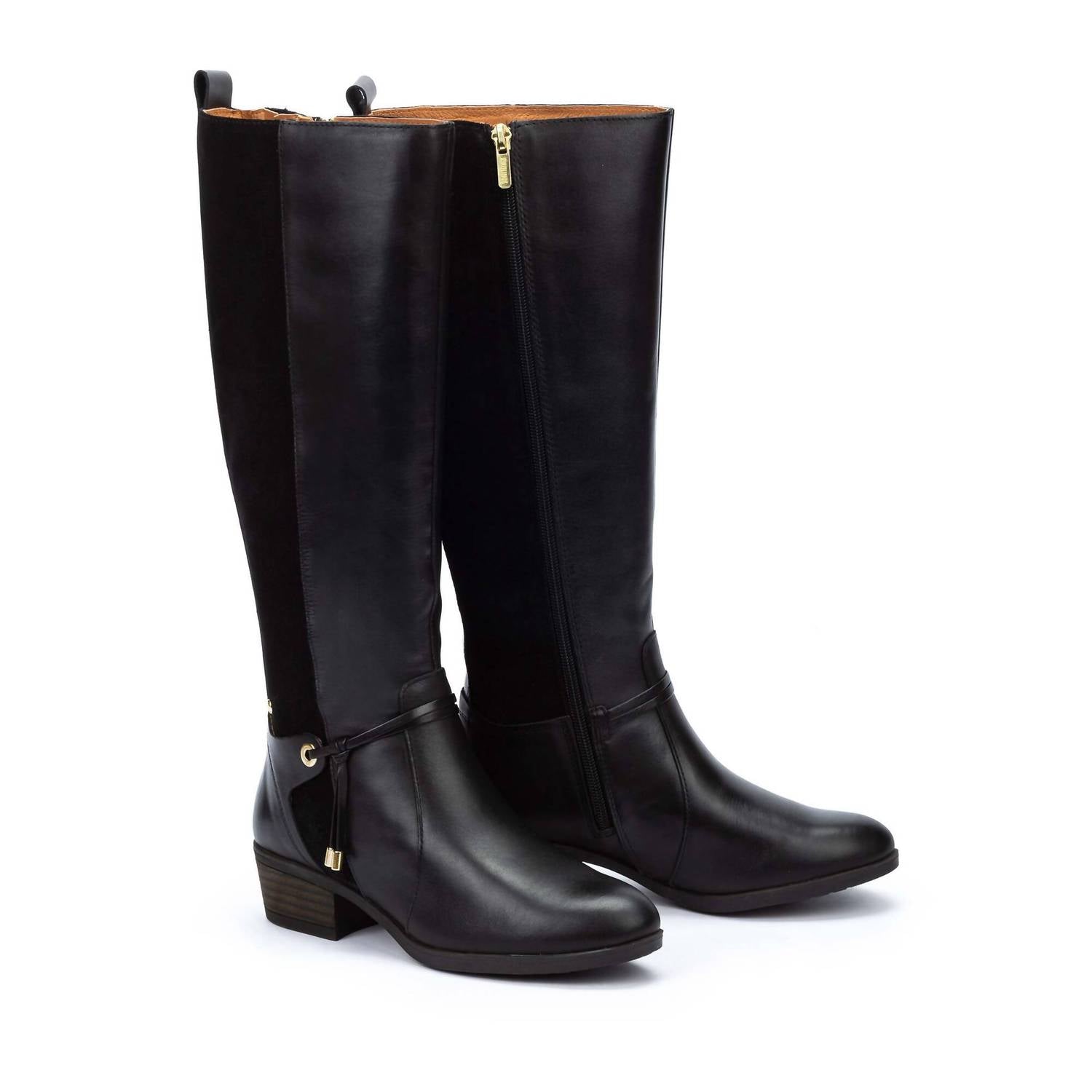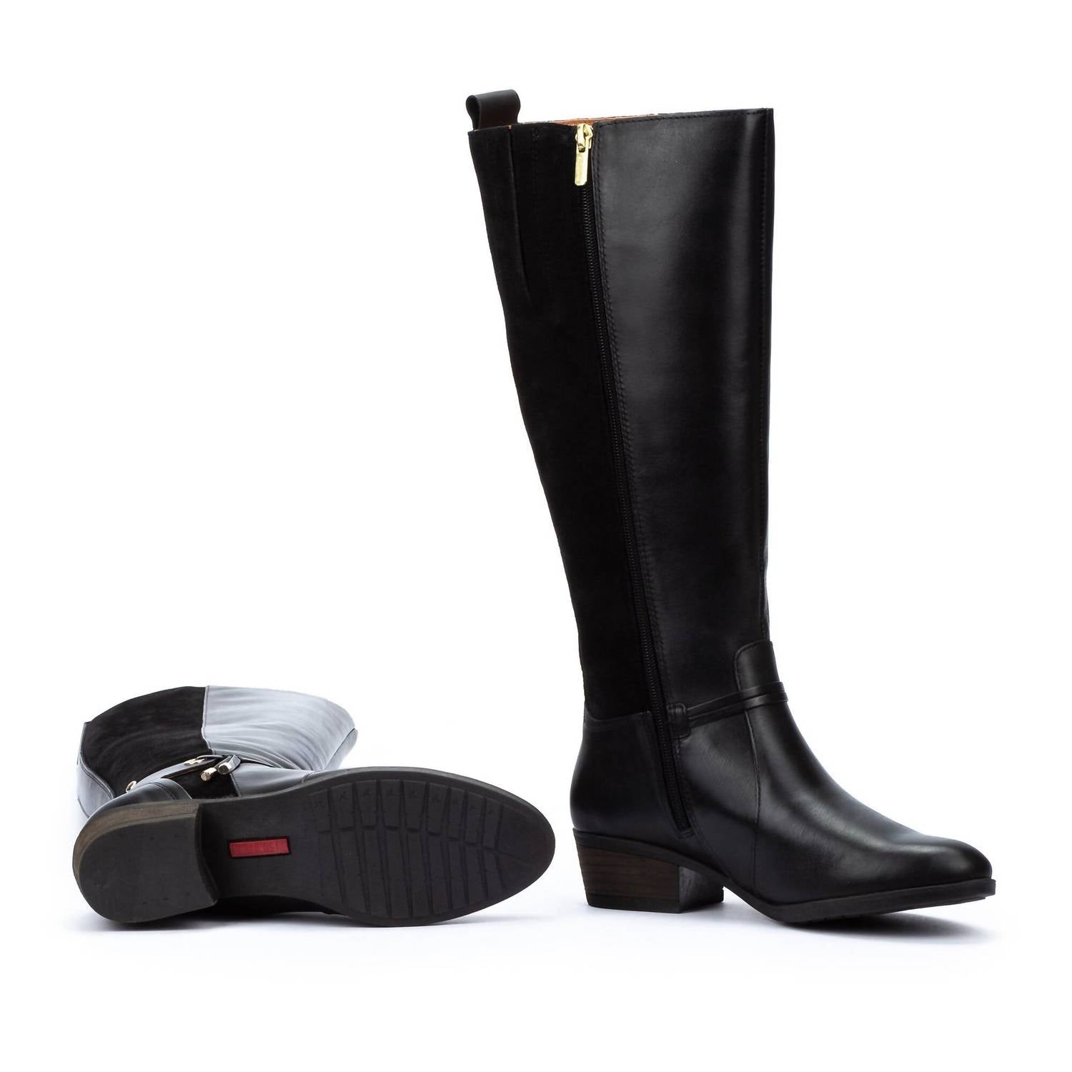 Step out in style featuring a sophisticated black leather exterior for a chic finish. Come with a comfortable round toe and a practical low block heel at 1.57". Crafted with a 100% calfskin leather upper and a soft inner lining made of 75% textile and 25% pigskin. Designed with an extra-wide shaft contouring 41 cm to fit seamlessly over your calves and a total shaft height of 37.5 cm. Close with a convenient zip.
