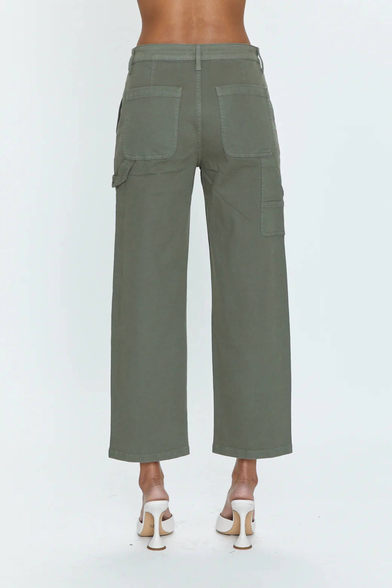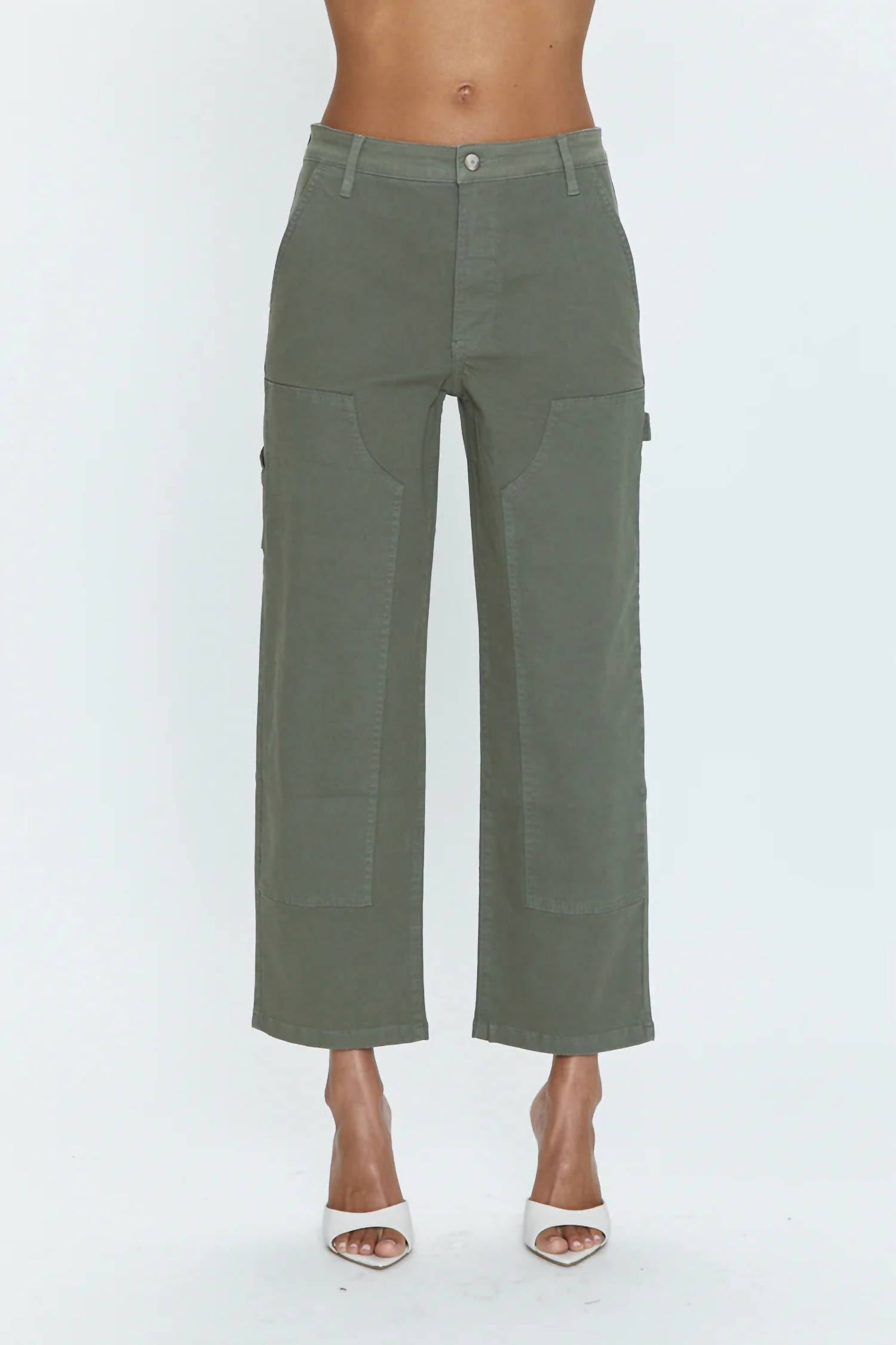 A straightleg pant that workes season after season. Dress these up with your favorite blouse or keep it casual with your go-to tee. Elevate your casual wardrobe with the Ashton Straight Leg Utility Pant by Pistola, designed in a striking Wild Fern hue. These pants feature a mid-rise and relaxed fit with a modern straight leg, complemented by practical details like front leg panels and a hammer loop. Made from a Cotton Blend of 98% Cotton and 2% Spandex, they offer comfortable stretch for all-day wear. Closure: Button closure, pockets included. Perfect for streetwear trends and vacation occasions this spring.