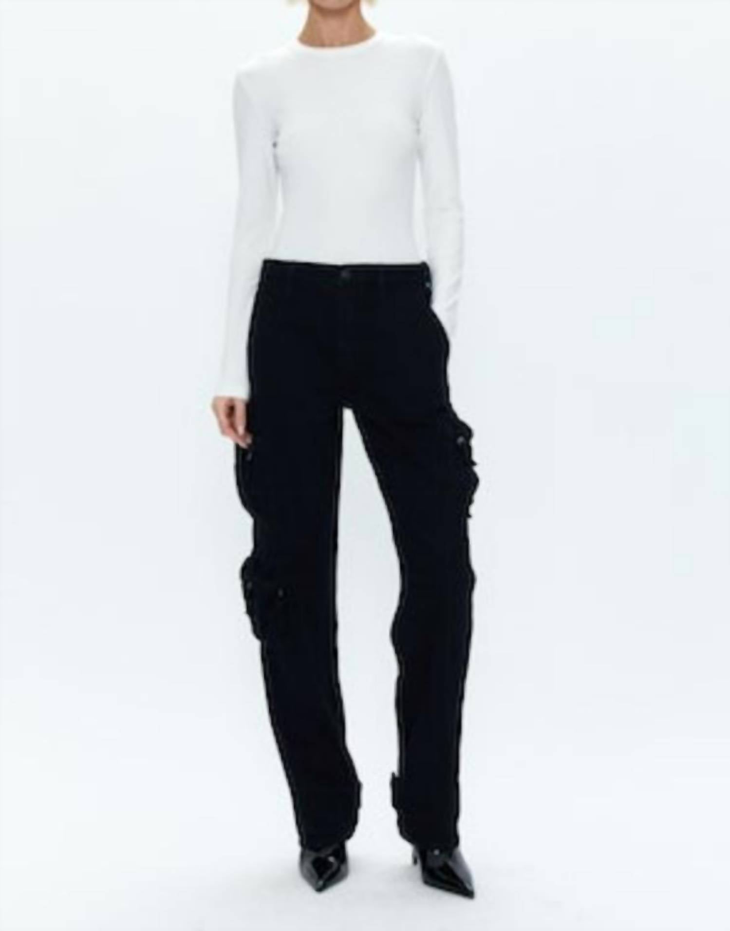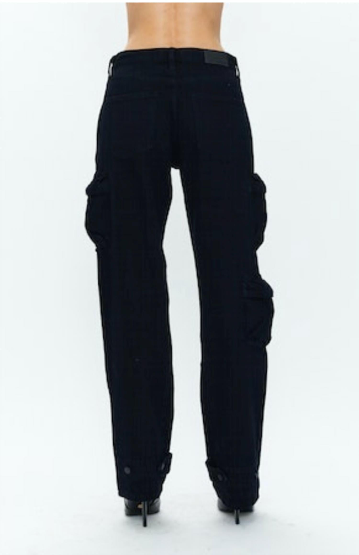 Elevate your style with the Bobbie Utility Ankle Cargo Jeans by PISTOLA, featuring a utilitarian flair with plenty of pockets and adjustable button-tab cuffs. These women's straight-leg jeans come in a solid, deeply washed Abyss color, crafted from a 77% cotton and 23% rayon blend for a lightweight feel. With a relaxed fit and a high-rise design, they boast a 33.5-inch inseam, 18-inch leg opening, and a 12-inch front rise, ensuring a comfortable wear. Closure type: Button closure.