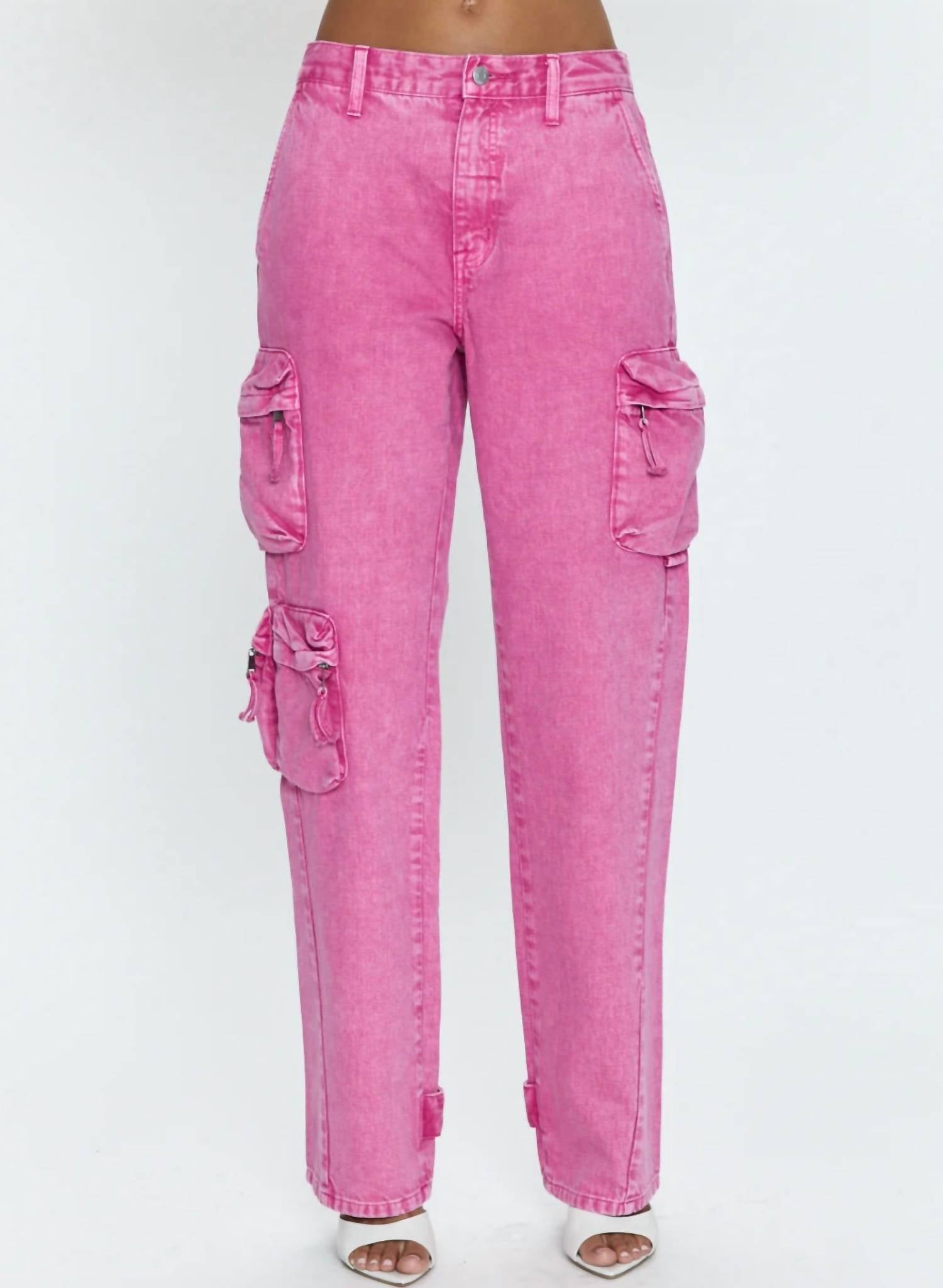 A perfectly tailored straight leg that you'll want in every color! Introducing the PISTOLA Bobbie Utility Mid-rise Loose Straight Cargo Pants, a stylish choice for women who love a relaxed fit. With a comfortable mid-rise and straight leg design, these pants feature a 75% Cotton and 25% Rayon composition. They have a cool utilitarian vibe with button closure, and are imported. Dimensions include an 11" rise, 32" inseam, and an 18" leg opening.