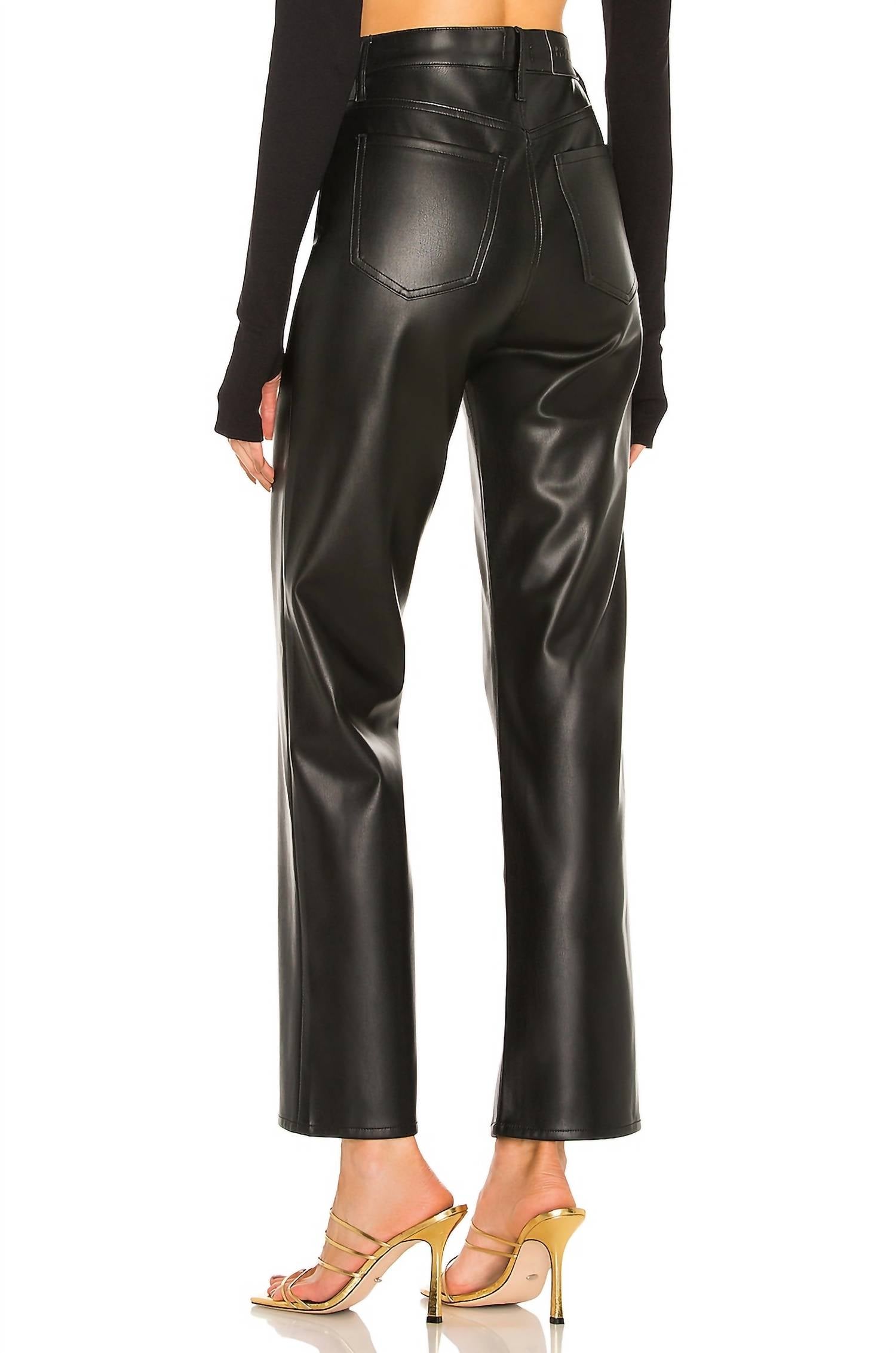 Stay on-trend and showcase your impeccable taste with these adaptable and stylish cropped pants. The perfect length to wear with your favorite mules. You'll love the fit! Discover the sleek Cassie Pant by PISTOLA, designed in a versatile Slate Black hue for a chic wardrobe addition. Crafted from 100% polyurethane faux leather with a soft fleece backing, these pants feature a high-rise fit and a slim, straight leg style. The button closure paired with a zip fly ensures a secure fit, complemented by practical 5-pocket styling. Originating from China, care for these pants is effortless with machine wash instructions followed by line drying. Measurements from size 25: Rise 11.5 inches, Inseam 30.25 inches, Leg opening 15 inches.