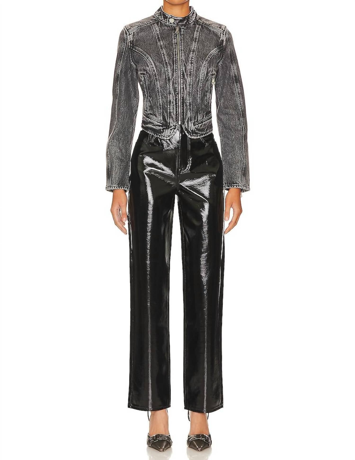 A perfectly tailored straight leg that you'll want in every color! These High-Rise Straight Pants feature a relaxed fit, zip fly, and button closure with 5-pocket styling. Made from 100% polyurethane, they offer a vinyl finish and are machine washable.