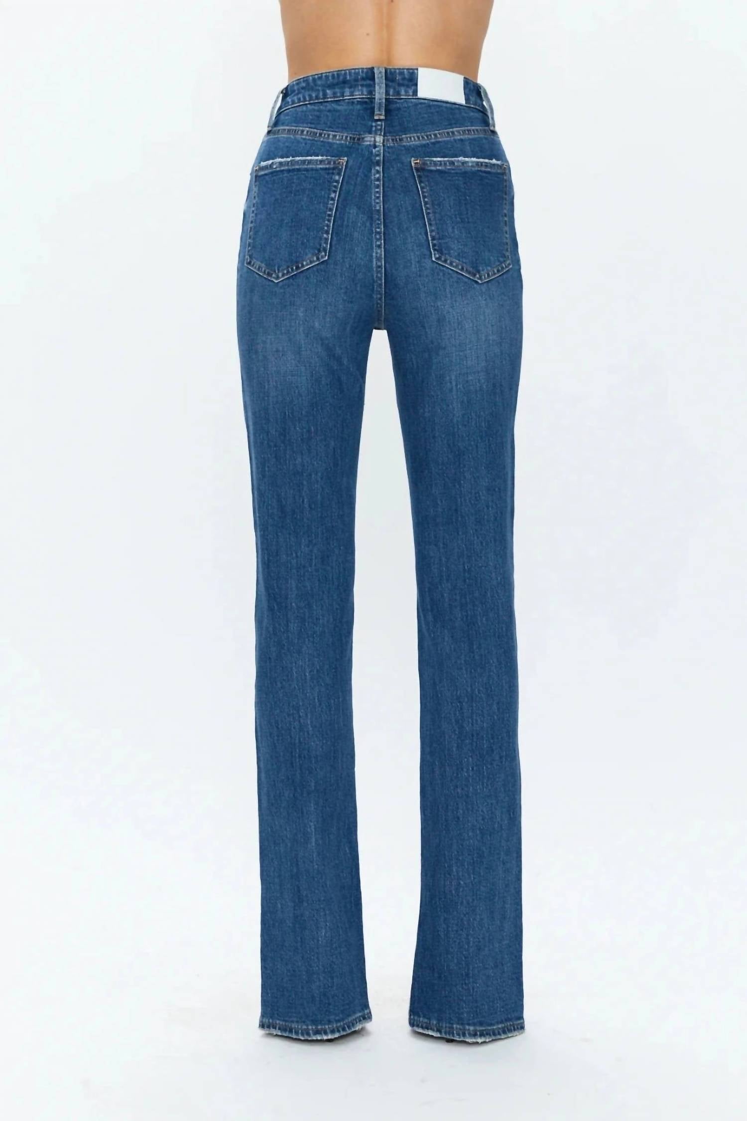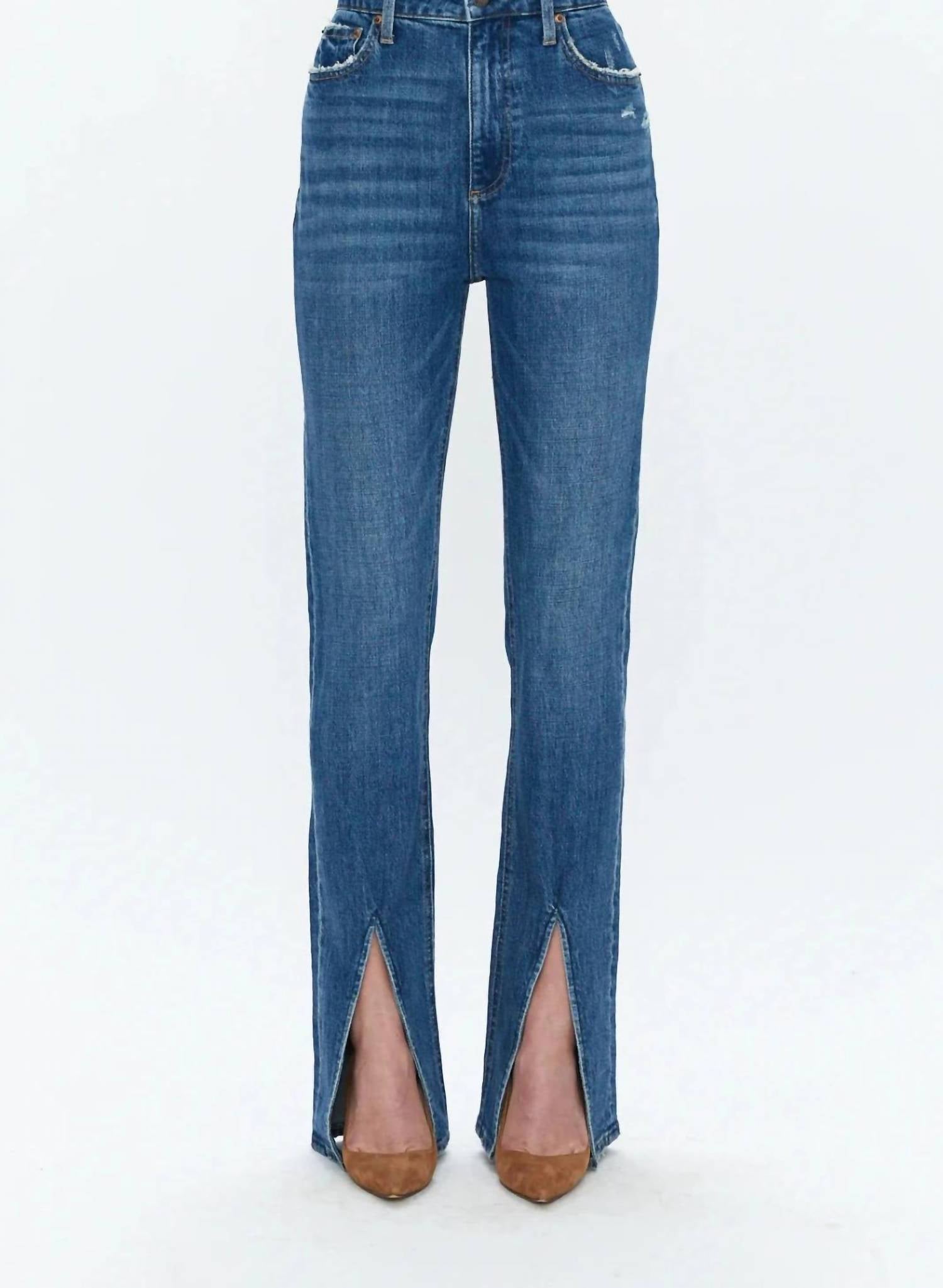 A flattering silhouette that's suprisingly versatile. Discover the Colleen Slim Boot by Pistola, your go-to jeans for showcasing your footwear. With a flattering high-rise waist, these relaxed-fit, straight-leg jeans feature a dark wash and ankle slits to accentuate your leg length and taste in shoes. Crafted from a cotton blend with 72% Cotton, 27% Rayon, and 1% Spandex, they offer both comfort and style. Closure type: Zip fly. Featuring a 12" rise and a 33" inseam, these jeans follow true-to-size fitting for an effortless wear.