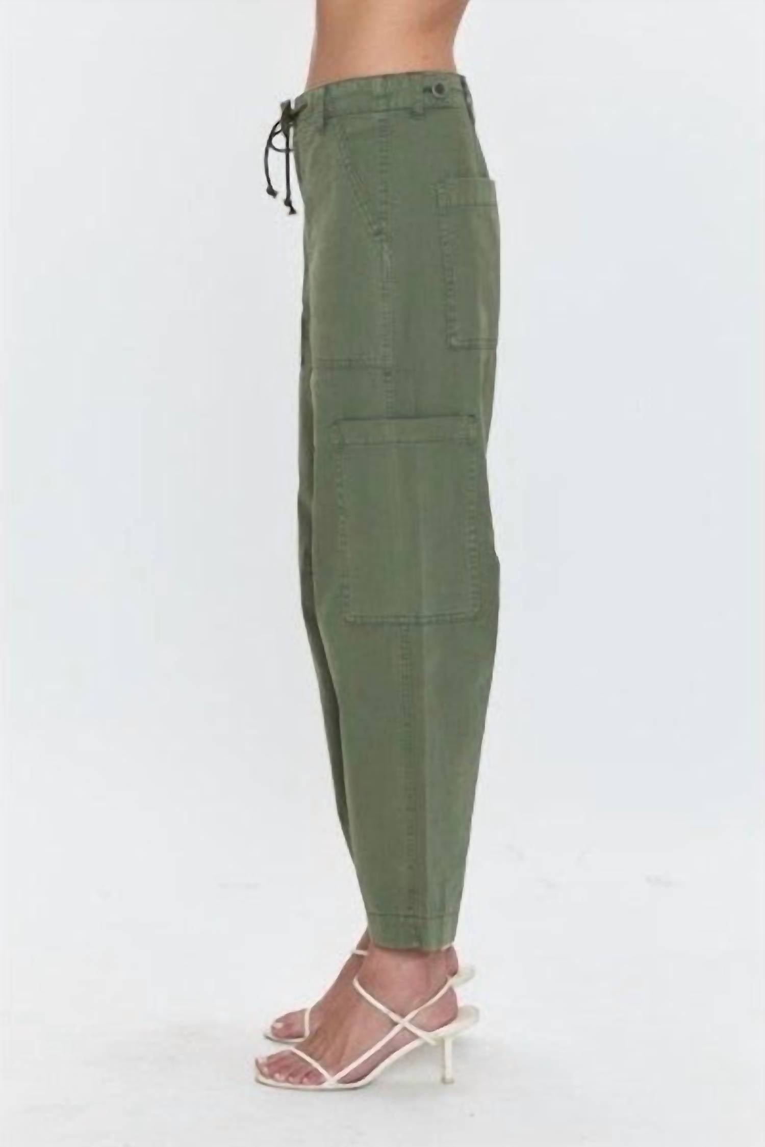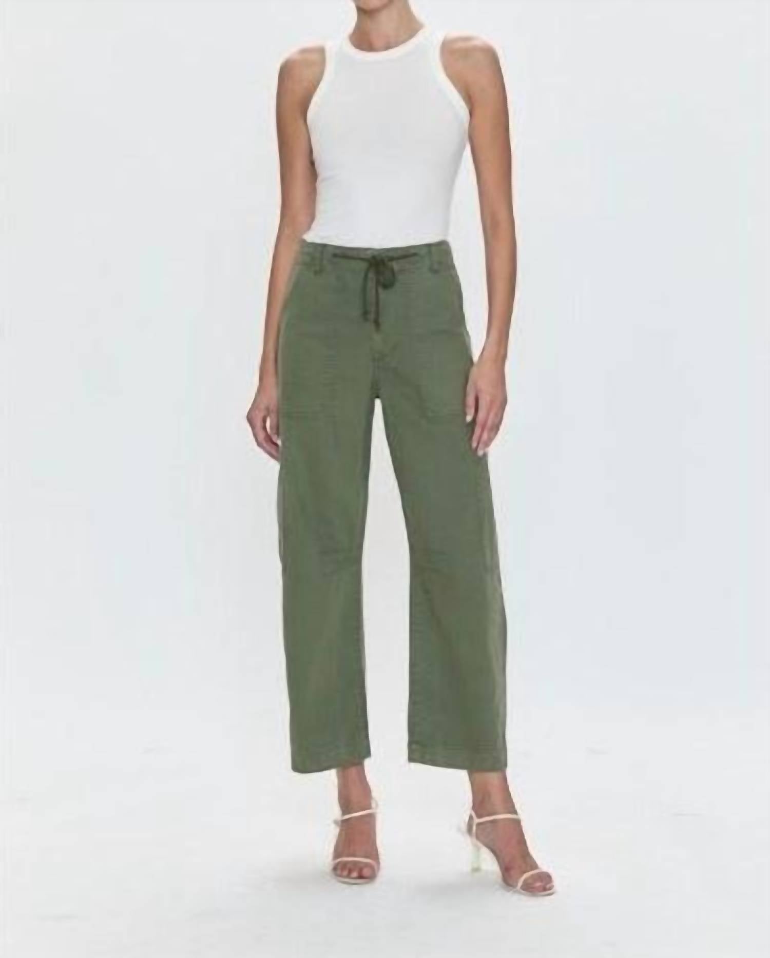 Meet the Pistola Sabrina Curved Utility Pant, a standout piece in a chic Meadow hue that effortlessly elevates any wardrobe. Crafted from solid cotton, these pants boast a relaxed fit with a wide leg design, making them perfect for any fashion-forward woman. The tie closure offers adjustability and ensures a comfortable fit, accentuated by functional pockets for added convenience. Care for these stylish pants with a simple hand wash.