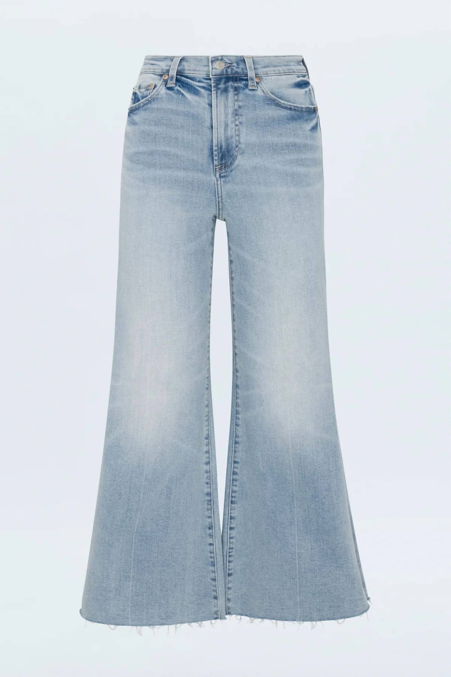 Just as cute as they are comfortable. Elevate your wardrobe with the Izzy Mid Rise Wide Leg Crop Jeans by PISTOLA, featuring a modern wide-leg silhouette with a playful kick flare at the cropped hem. Crafted from a comfortable 75.5% Cotton / 13% Rayon / 10% Polyester / 1.5% Polyurethane in a light wash Strive color, these jeans effortlessly blend style with versatility. Designed with a mid-rise waist, button closure, and slim fit, they are perfect for minimalist and holiday party looks. Care instructions include machine wash for easy upkeep.