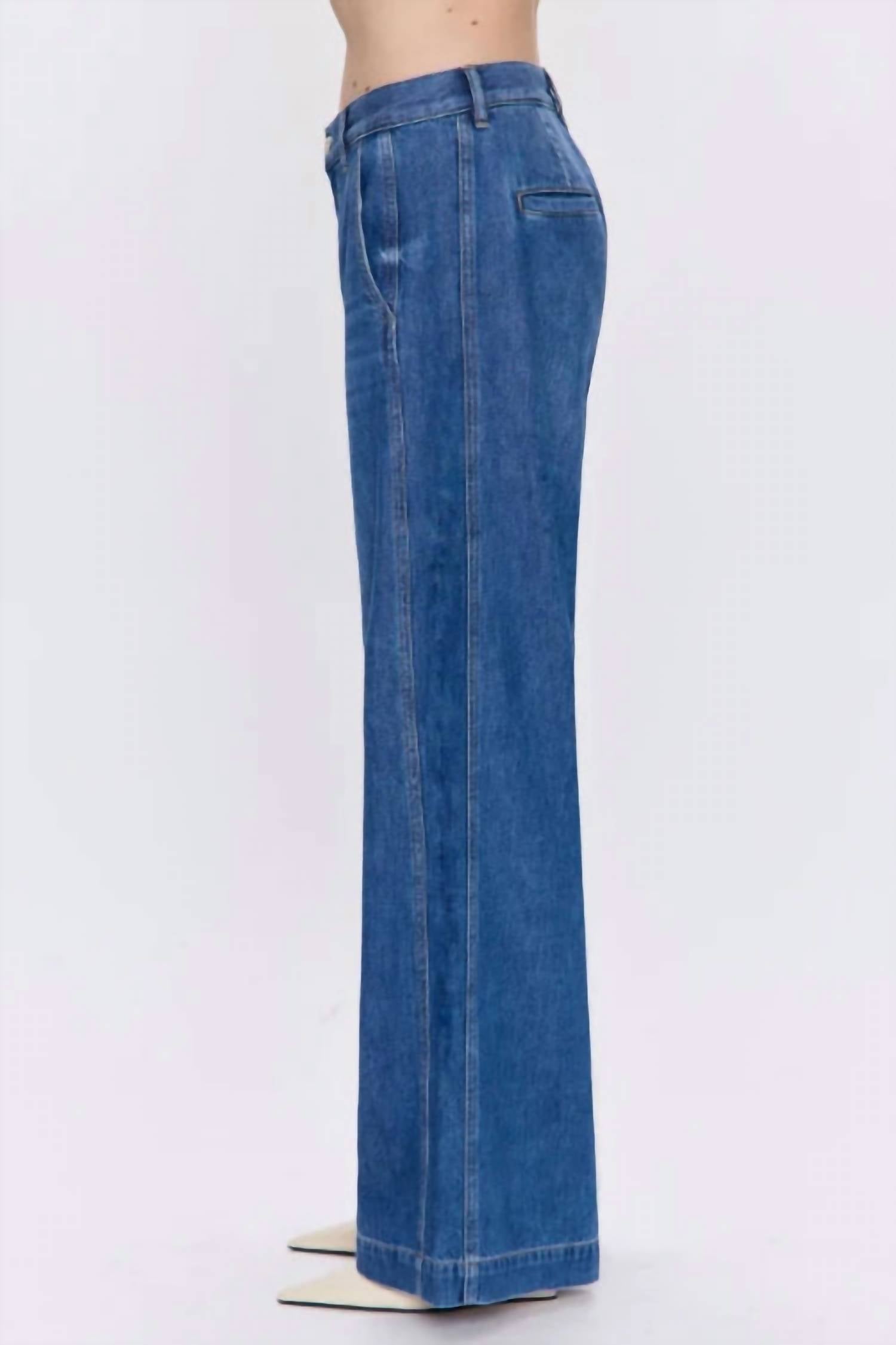 Just as cute as they are comfortable. Embrace laid-back luxury with the Jadyn Low Slung Palazzo Jean by PISTOLA in the color Imagine. Featuring a button closure, these wide-leg pants sit low on the hips with a relaxed fit, offering a modern edge through a low rise of 11 1/4” and a leg opening of 25". Crafted from a comfortable blend of 59% Cotton and 41% Lyocell non-stretch denim, they deliver graceful flow with a full-length 32" inseam. Imported with care, simply machine wash cold and tumble dry.