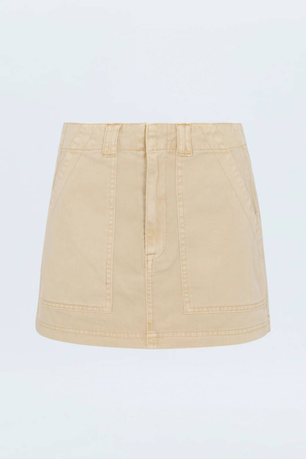 Show just the right amount of leg in this fit flattering mini. Discover the Kayla Utility Mini Skirt by PISTOLA, a chic piece in a washed khaki hue that embodies minimalist style. This mini skirt is designed with practical utility detailing, featuring a length of 13.75 inches (35.0 cm) and crafted from lightweight, non-stretch 100% cotton twill. The skirt closes with hook-and-eye at the waist and a button fly, offering both a sleek appearance and secure fit. Imported from China, it's easy to care for with a simple cold wash.