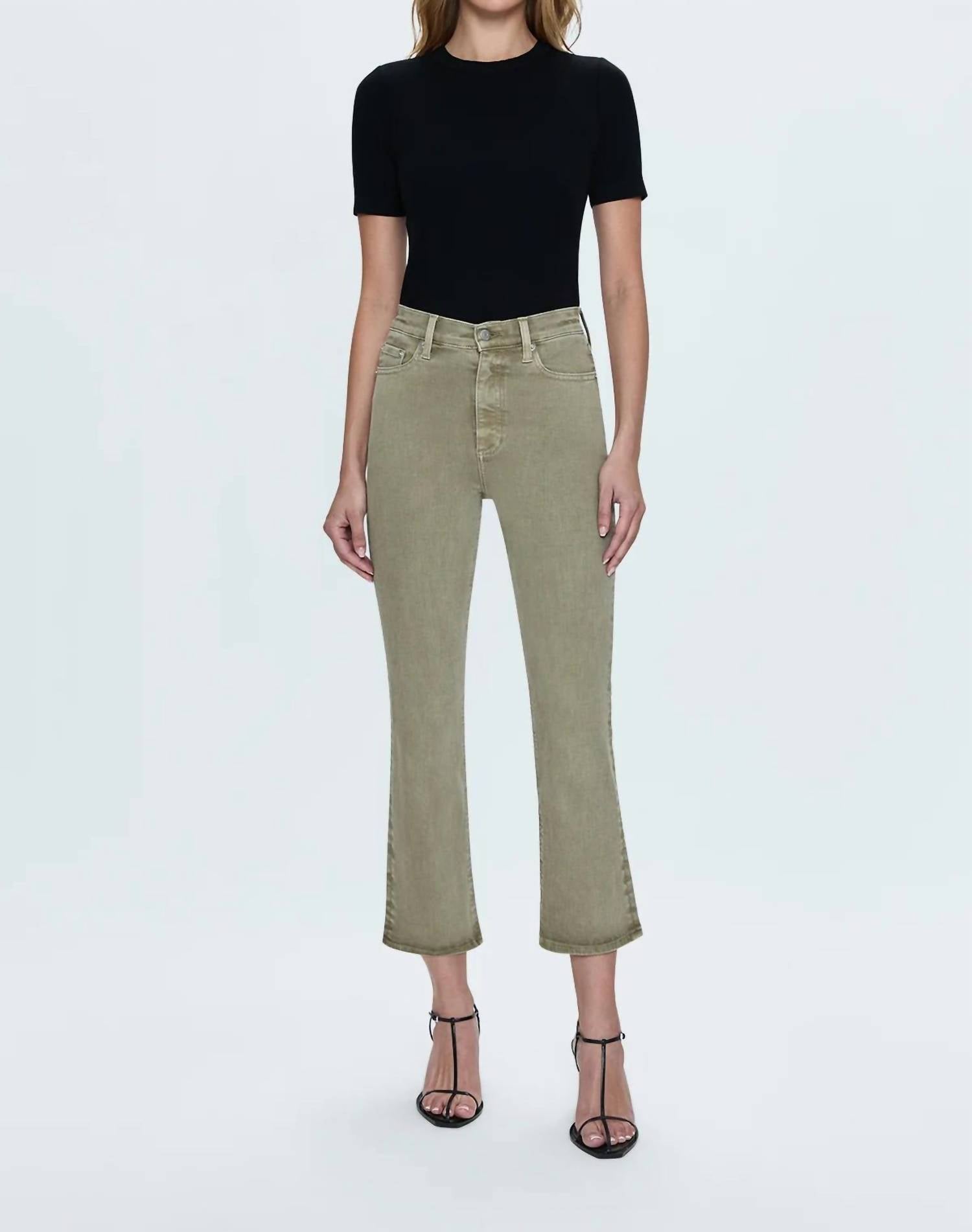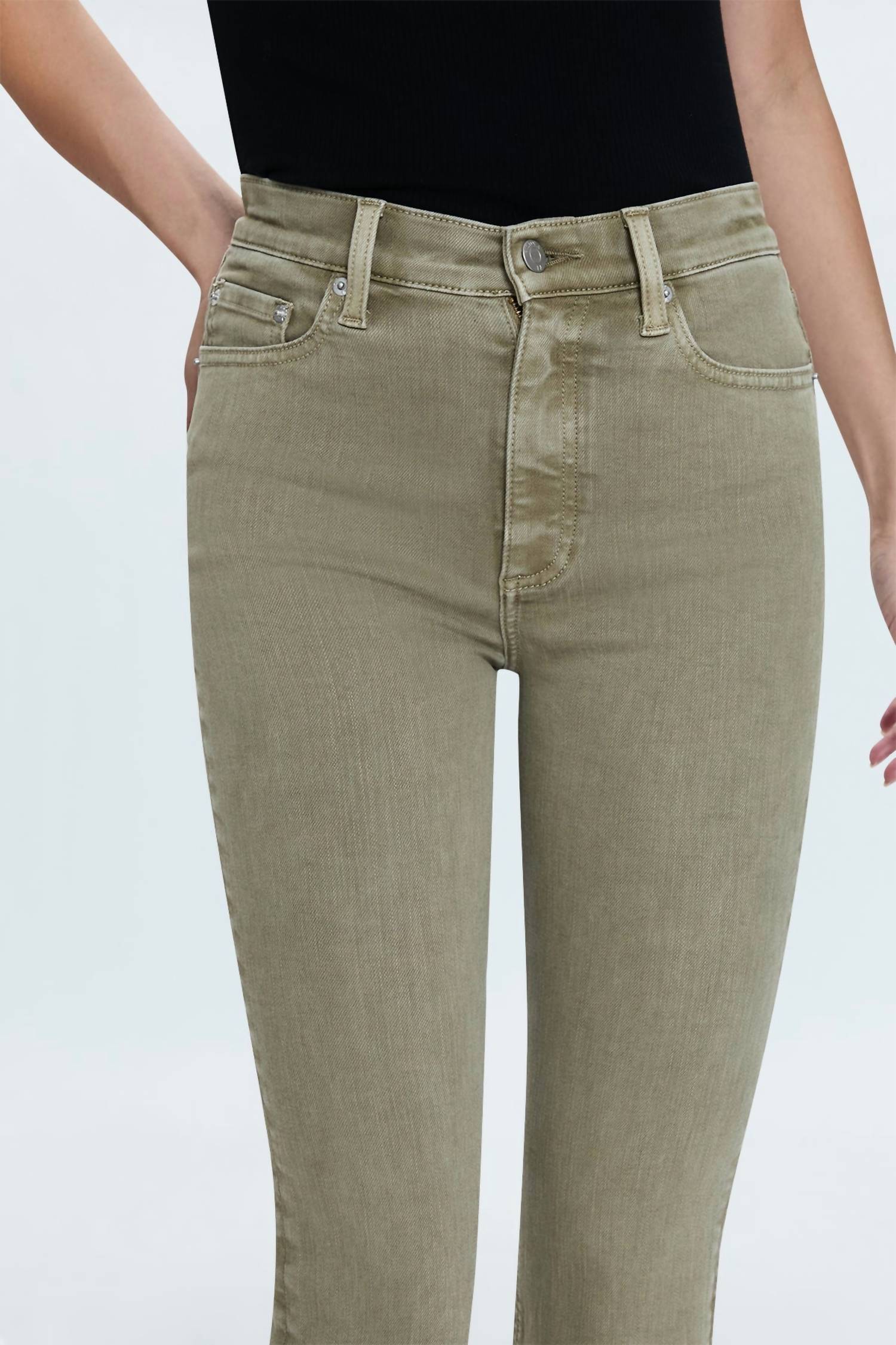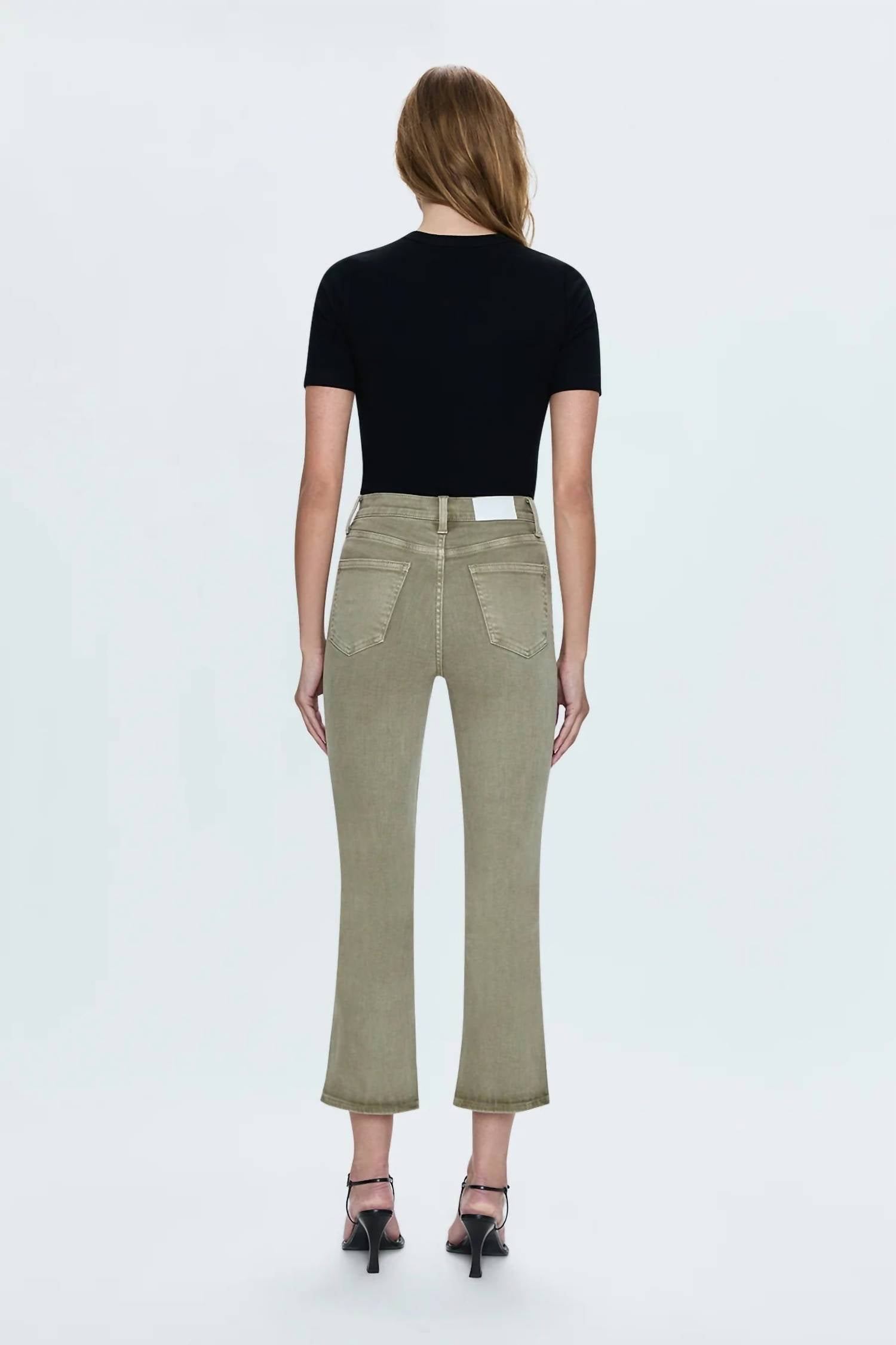 High-waist is here to stay and we especially love this style. Elevate your wardrobe with the Lennon Pants by PISTOLA, expertly crafted in the eye-catching Green Willow hue. These women's pants boast a flattering high rise, 11-inch waist rise, and a 27-inch inseam, tailored in a bootcut silhouette with a flared leg. Made from a cotton blend, the fabric includes 67% Cotton, 9% Rayon, 22% Recycled Polyester, and 2% Elastane for comfort fit. Imported with a clean finish, these pants feature a button closure and tonal stitching. Care: Machine wash.