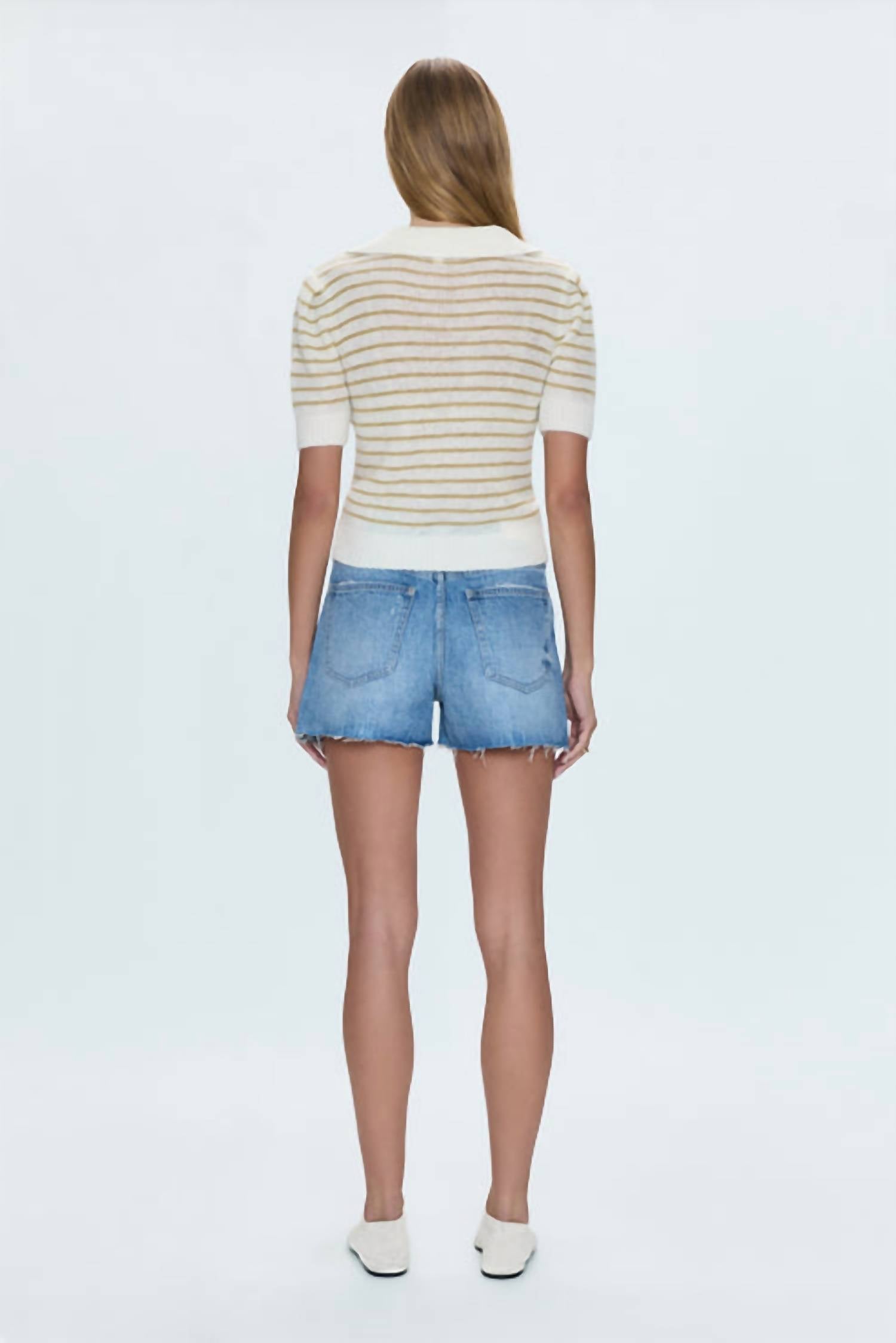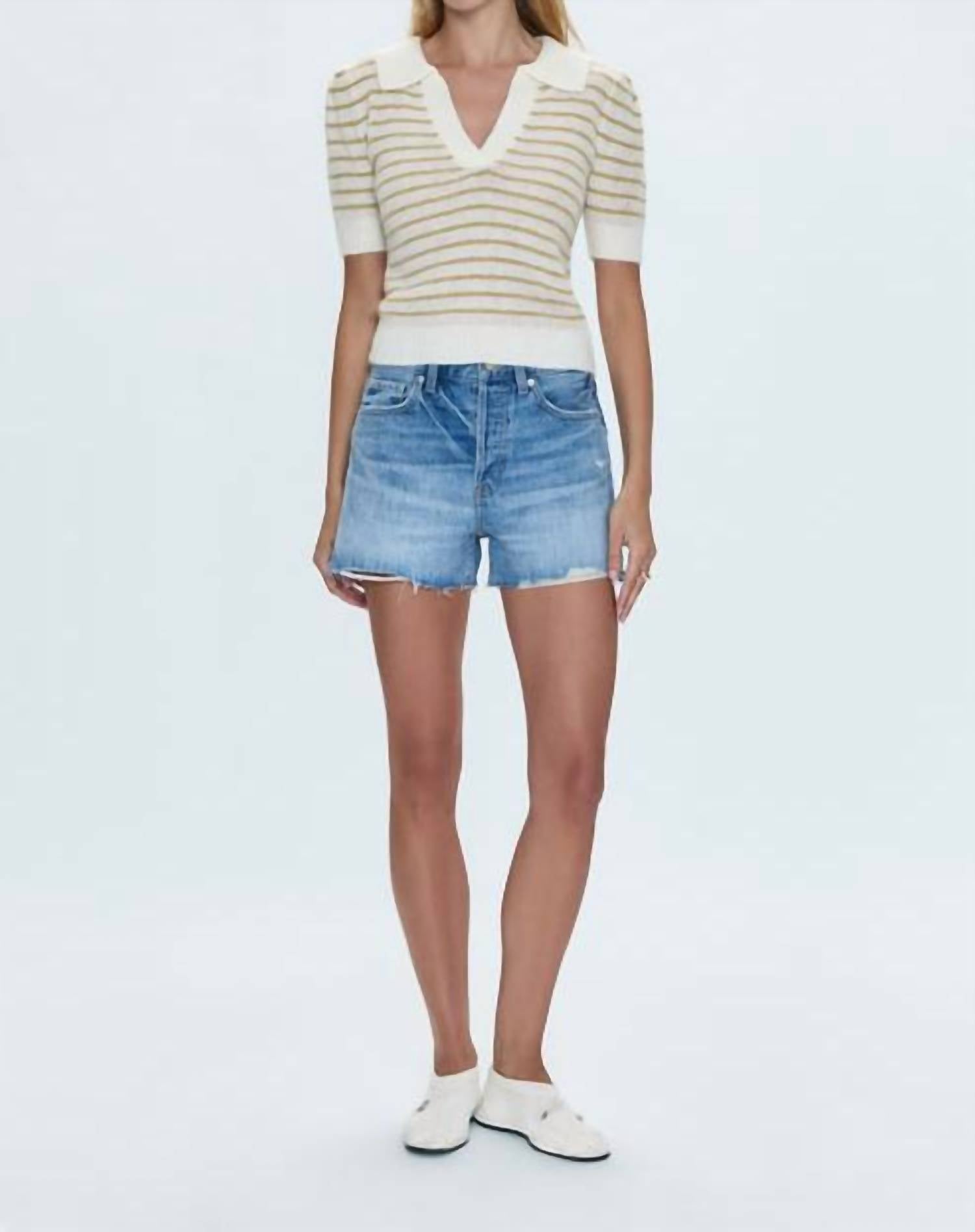 Introducing the Nova High Rise Short by PISTOLA, a staple for your summer wardrobe in the chic Abroad Vintage hue. Crafted from solid cotton, these shorts promise comfort and style with every wear. The design features a convenient button closure, with a 3.5-inch inseam that adds the perfect 90s flair to your vacation vibe. Care is easy with machine wash instructions, making these jean shorts perfect for warm-weather adventures.