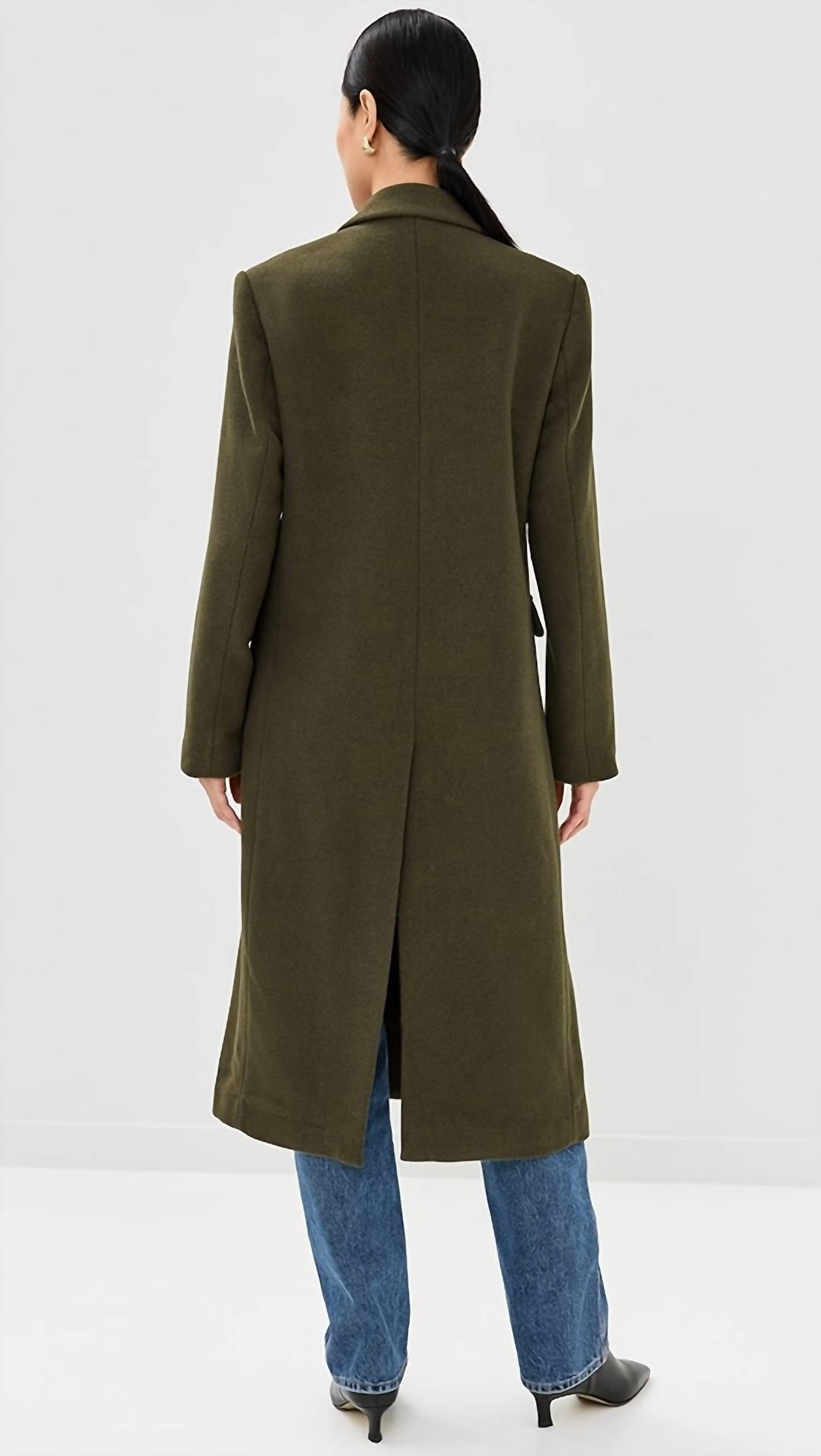 Introducing the PISTOLA Prescott Wool Coat, a chic addition to your outerwear wardrobe in a Caper hue. This long sleeve, solid 38% Polyester/33% Wool/20% Viscose/9% Acrylic coat boasts a commanding 45.75-inch length and features a classic double-breasted, button closure design. Made for women who appreciate a blend of refined style and warmth, it also includes pockets for added functionality. Crafted for fall weather, it requires dry cleaning to maintain its sophisticated look.