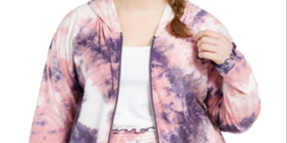 Planet Gold Women's Tie Dye Zip Front Jacket Pink Size 2X