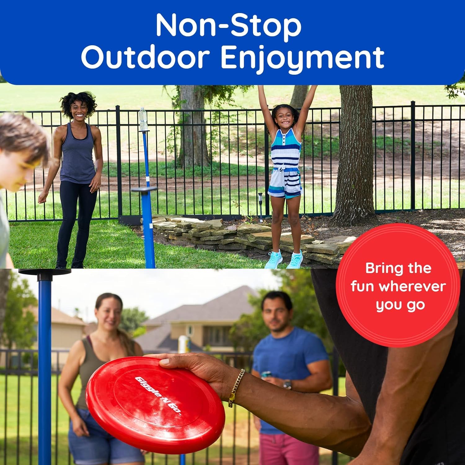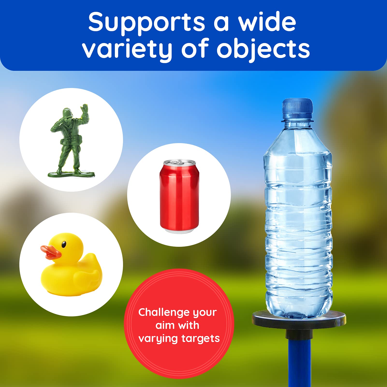 - COMPLETE KIT - Comes with everything to play right out of the box including flying discs, bottle stands and pole hardware. Just provide your own bottles or cans!