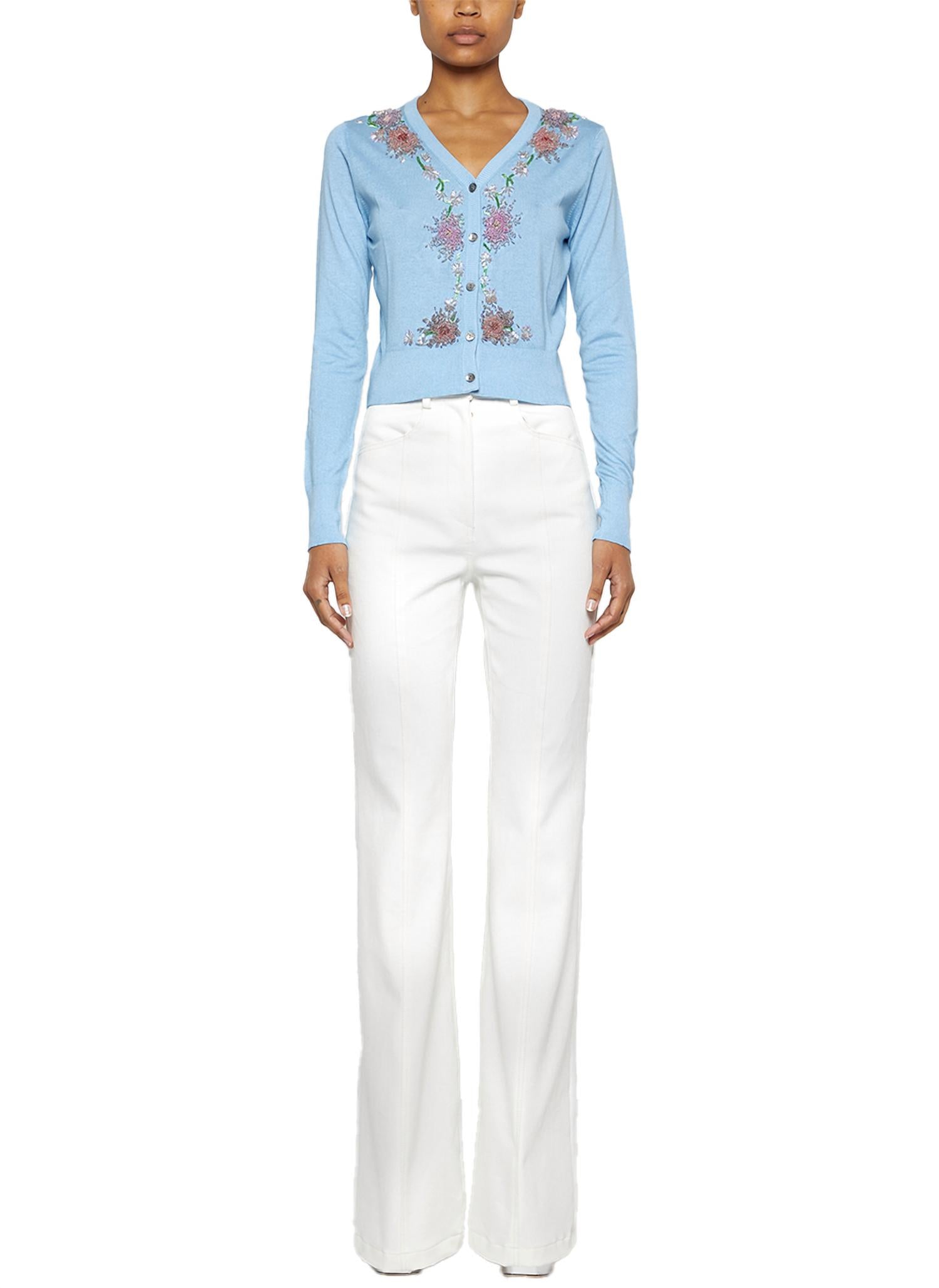 Slightly flared pants are all the rage right now and these are no exception. Pair these with your favorite tee for a more casual look, or with your favorite button-up blouse for an evening out. Introducing the Bootleg Jeans by Prabal Gurung, an elegant choice for women seeking a sophisticated look in white. Crafted from durable polyester, these solid-patterned jeans feature a classic bootcut leg style. Perfect for spring, they seamlessly transition from workwear to special occasions like weddings or Thanksgiving gatherings. Care: Dry clean only.
