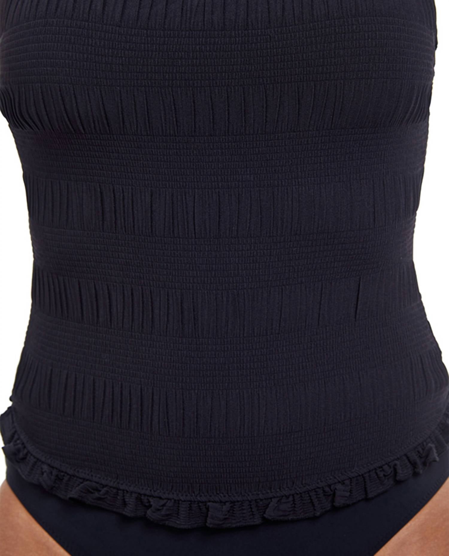 This Bandeau one piece features a soft cup bra, built in tummy control, adjustable/removable straps. 70% polyamide, 30% elastane.