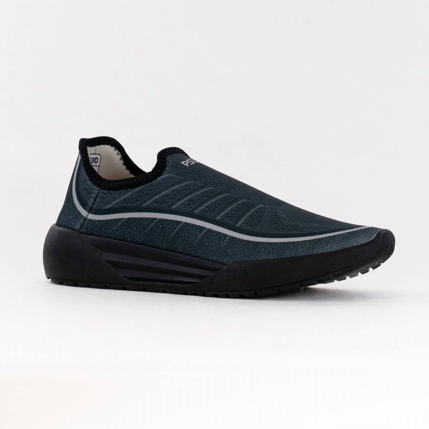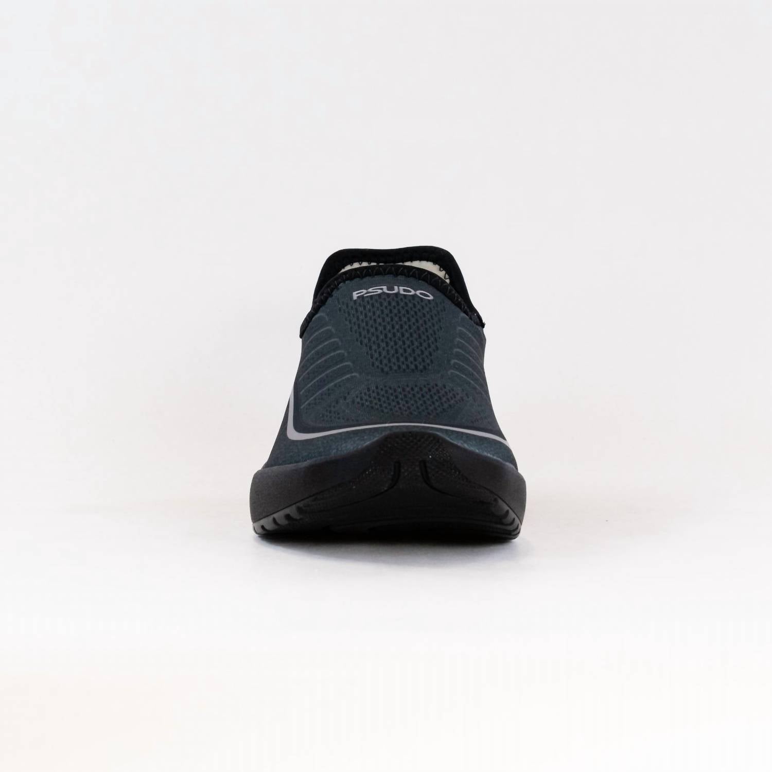 Experience unparalleled comfort and eco-conscious design with PSUDO's Men's Racer Sport Shoes in sleek black. Crafted in the USA from recycled materials, these sneakers feature a breathable, sweat-wicking upper and an anti-microbial insole for a fresh feel. With no laces and anatomically correct arch support, they offer a secure fit ideal for fitness and athleisure style. Care: Machine wash cold on a gentle cycle with mild detergent, remove and hand wash insoles, air dry.