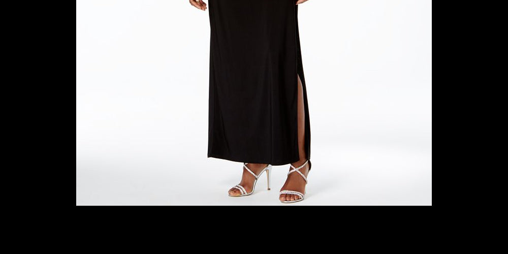 Make a dramatic entrance in this stunning R & M Richards cold-shoulder gown| featuring a beautiful embellished sleeves.| Side slit| Sweetheart neckline; A-line silhouette| Made in USA of imported materials| Concealed back zipper with hook-and-eye closure| Cold-shoulder detailing