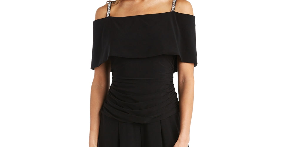 R & M Richards Women's Cold-Shoulder Jumpsuit Black Size 8 Petite