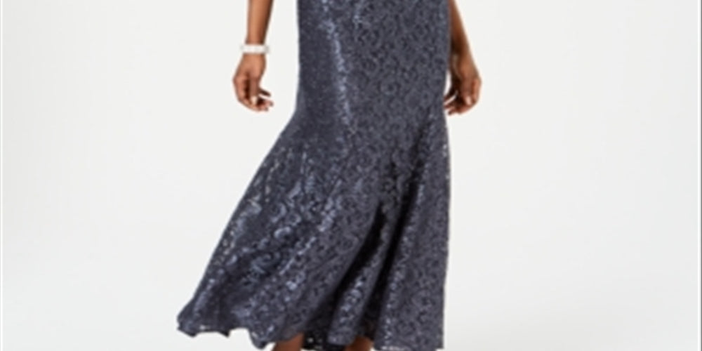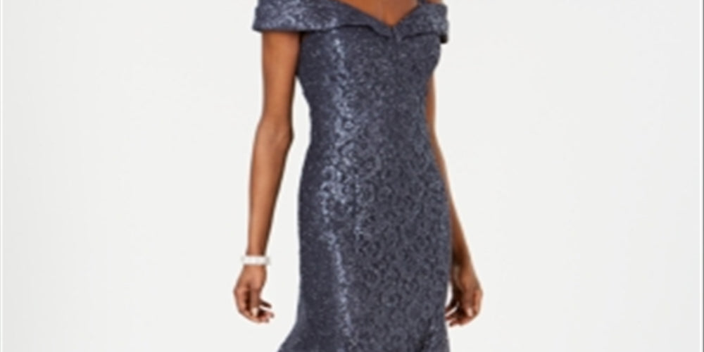 R & M Richards Women's Off the Shoulder Lace Gown Silver Size 12