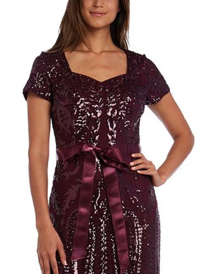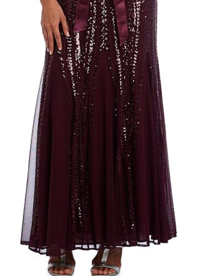 R & M Richards Women's Sequined Ribbon Belt Gown Purple Size 14