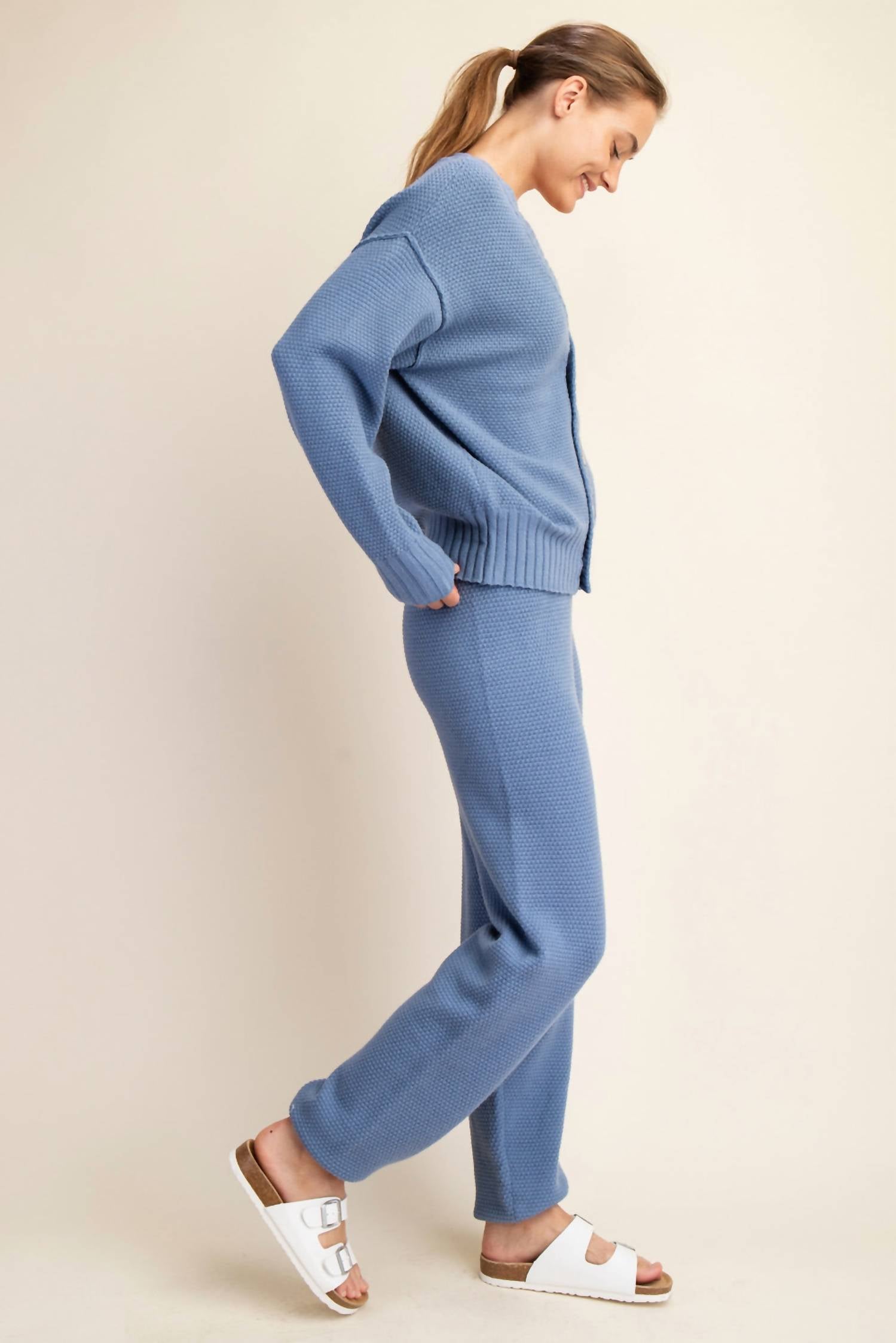 Introducing the Teagan Knit Jogger by RAE MODE, a chic addition to your loungewear collection in Dark Blue Grey. Made with a cozy luxurious knit, these joggers offer a relaxed, high-rise fit inspired by the jogger style. 50% Viscose, 28% Polyester, 22% Nylon. Pull on. Hand wash, lay flat to dry.