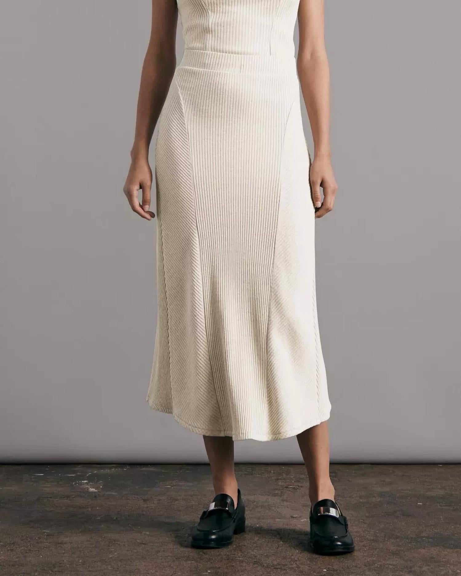 Tuck your favorite tee into this midi length skirt for an effortlessly cool look.Switch from work to weekend in this slim-fit ribbed skirt. This A-line, pull-on style is a cotton blend that hugs in all the right places, making it comfortable enough to wear all day (and night).