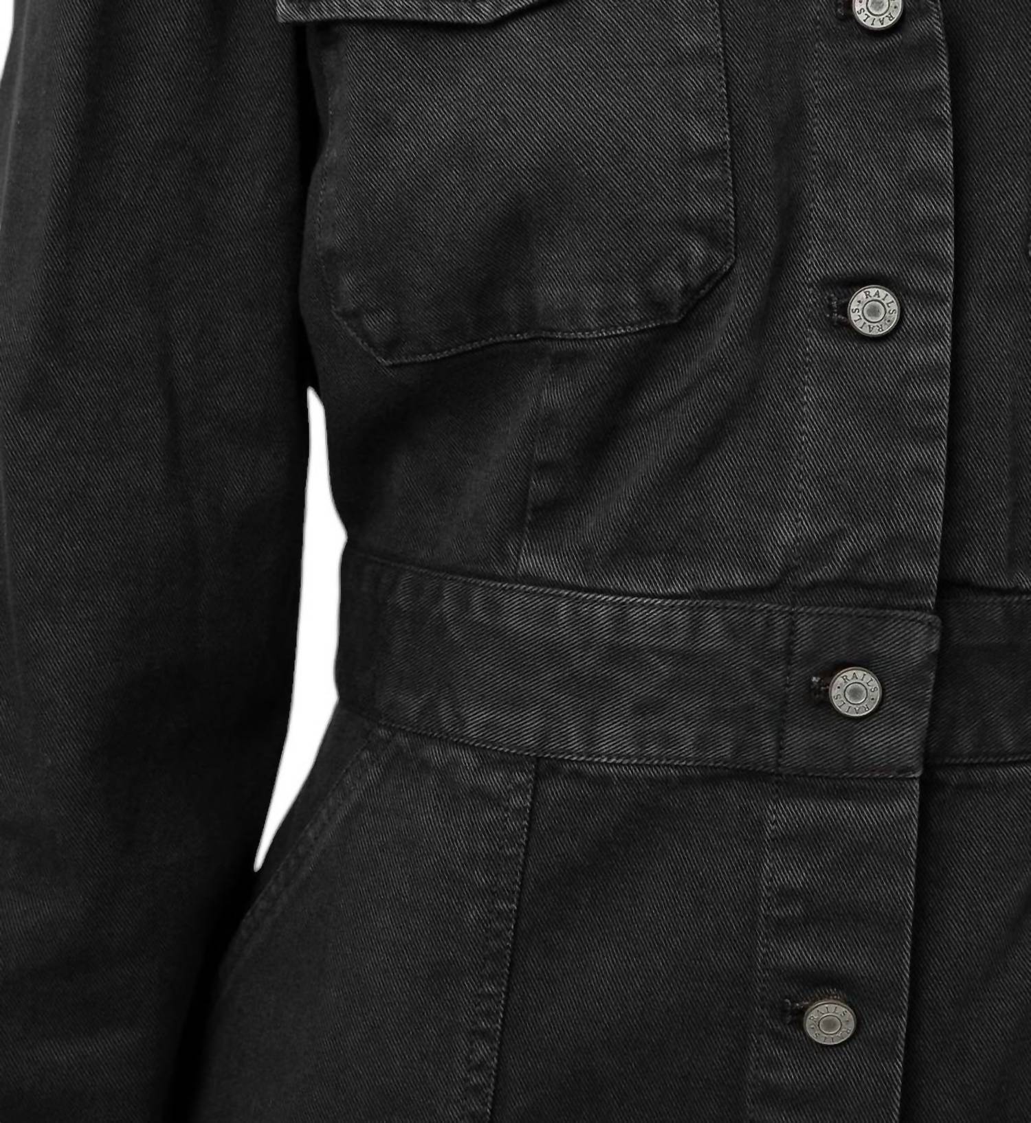 A short and breezy dress for those warmer days. Structured Twill Denim Mini Dress – This long-sleeve, unlined mini dress in charcoal grey features a button-down front, classic fit, and notched collar. Designed with military patch pockets at the chest, front hip pockets, and puff sleeves, it combines casual ease with a polished look. Finished with branded rivet buttons, it’s perfect for a lightweight, transitional denim style. Made from 50% cotton, 50% rayonMachine wash cold separately on a gentle cycle.