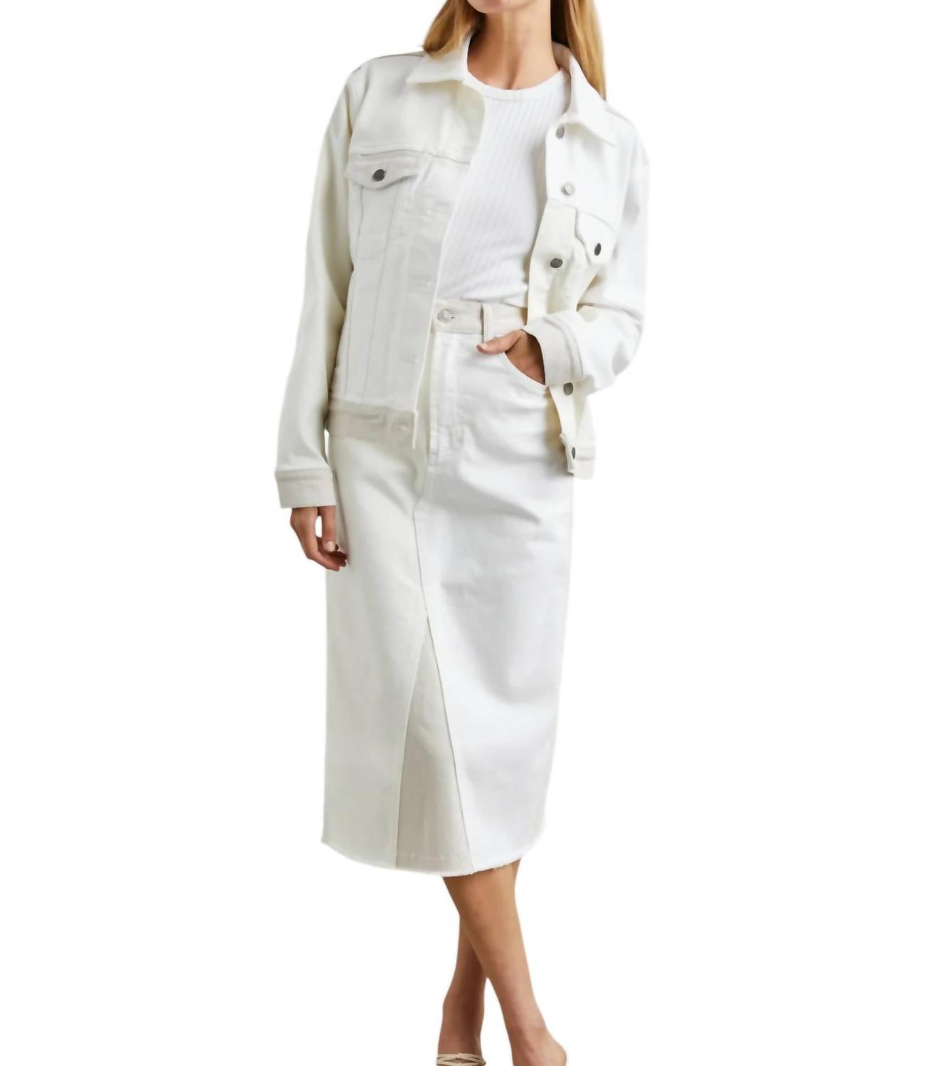 Show just the right amount of leg in this fit flattering mini. Sophisticated Ecru Patchwork. Effortlessly merges contemporary style with timeless elegance. Designed with high-waisted midi skirt. Intricate patchwork of neutral shades. Crafted from a soft comfort stretch fabric. Ensures both chic and wearability. Features a functional zipper fly and a back vent. Providing ease of movement and a flattering silhouette. Made from 98% cotton and 2% elastane. Offers the perfect balance of comfort and durability. True to size for the perfect fit. Stylish, yet practical ensemble.