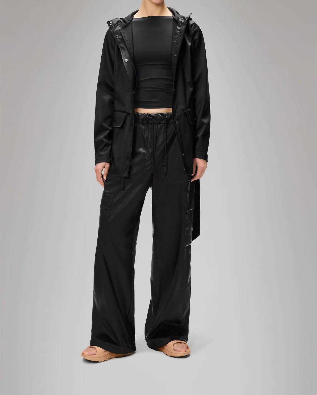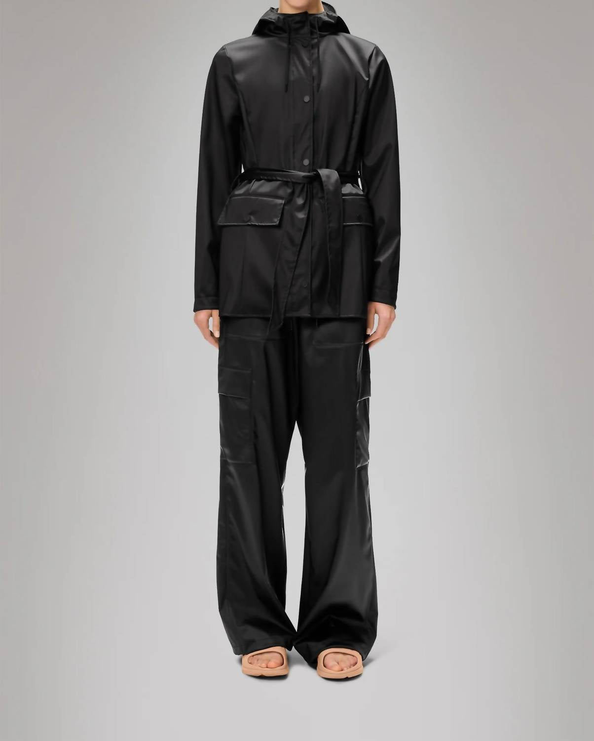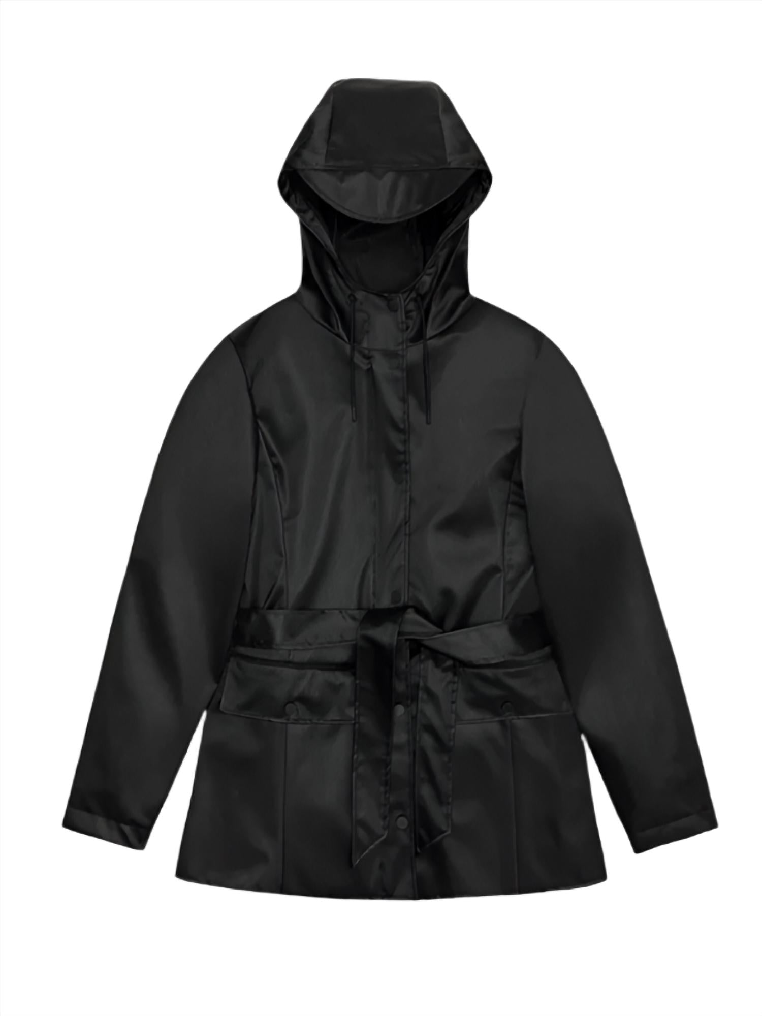 This utility jacket is the perfect combination of cool and feminine. Introducing the Curve Rain Jacket W3 by Rains, a stylish and functional raincoat designed to protect against water, wind, and chill. This utility jacket features long sleeves and a hooded neckline, crafted from 100% polyester for a smooth, lightweight finish. The jacket comes with a snap closure and welded seams, providing a figure-flattering silhouette with high functionality. Made with care instructions that recommend machine washing, this imported piece in a solid shade color is perfect for maintaining style and comfort in inclement weather.