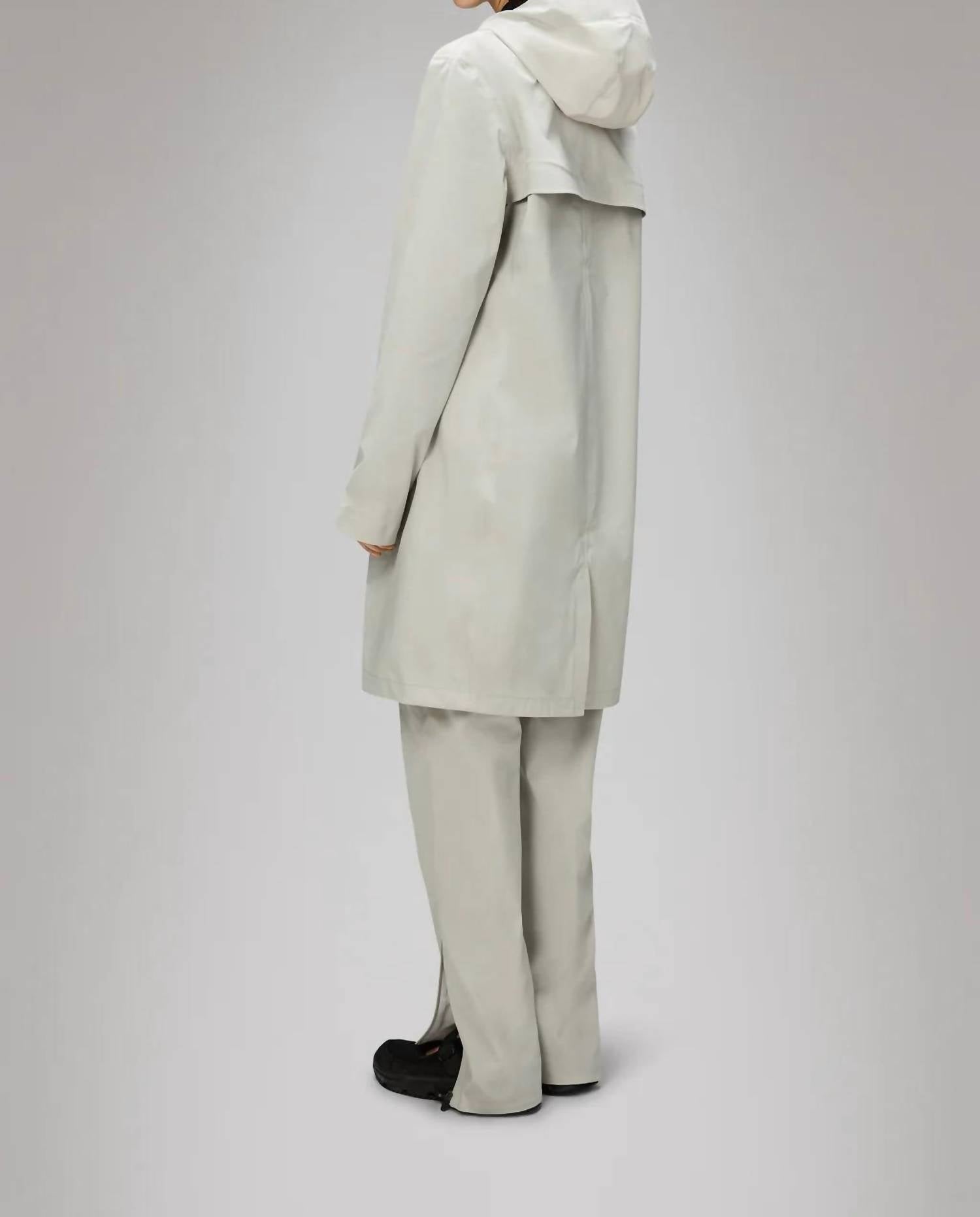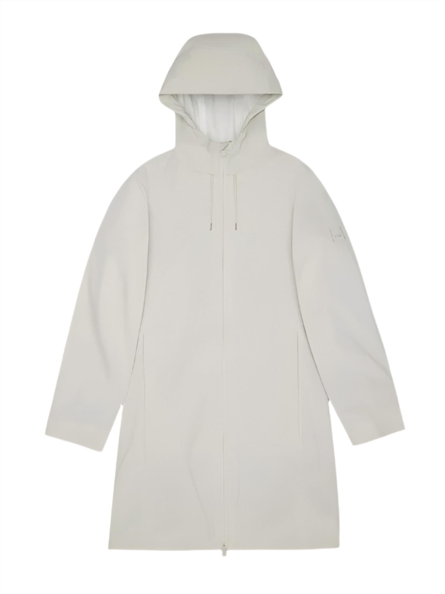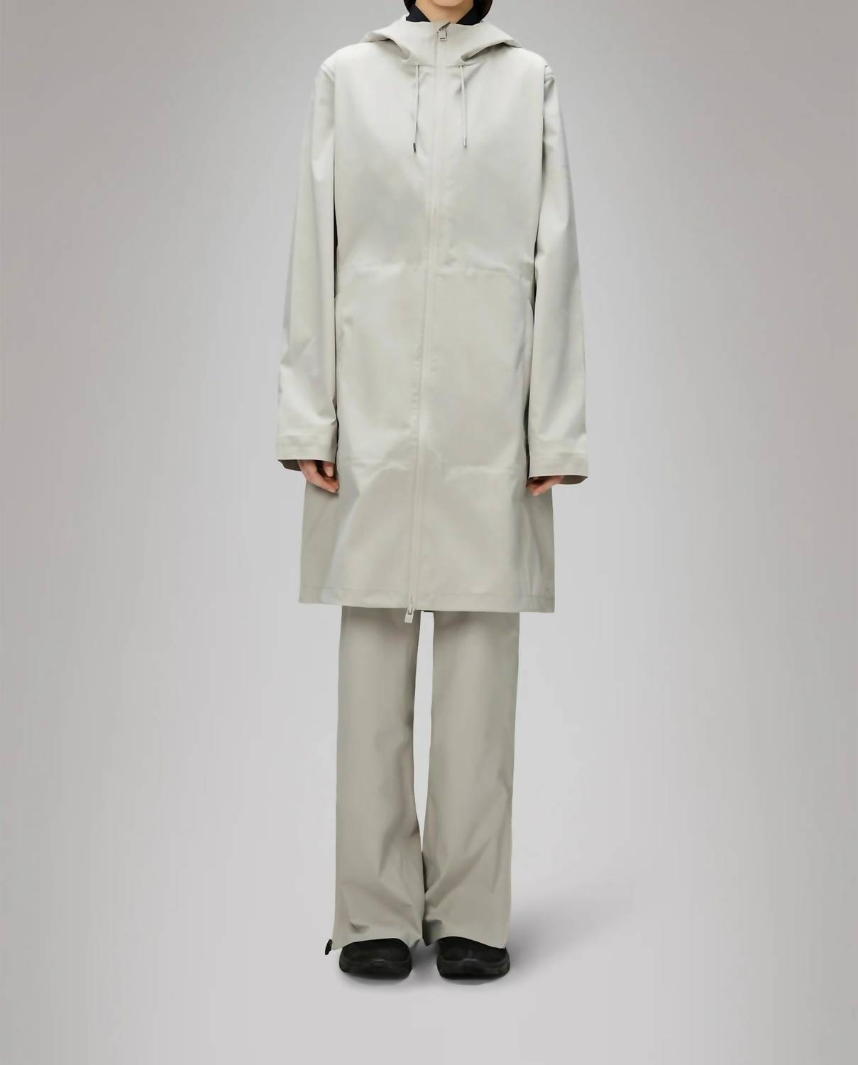 The ultimate cool-girl utility jacket. Introducing the Suva Hardshell Long W Jacket by Rains, a blend of high functionality and lifestyle-tech aesthetics. This women's utility jacket in solid color features long sleeves and is crafted from 100% polyester, offering a waterproof design complete with a zip closure for added protection. The garment boasts a hood with drawstring adjustment and practical side pockets with zip closures. This imported piece is easy to maintain with machine washable care instructions, making it both practical and stylish.