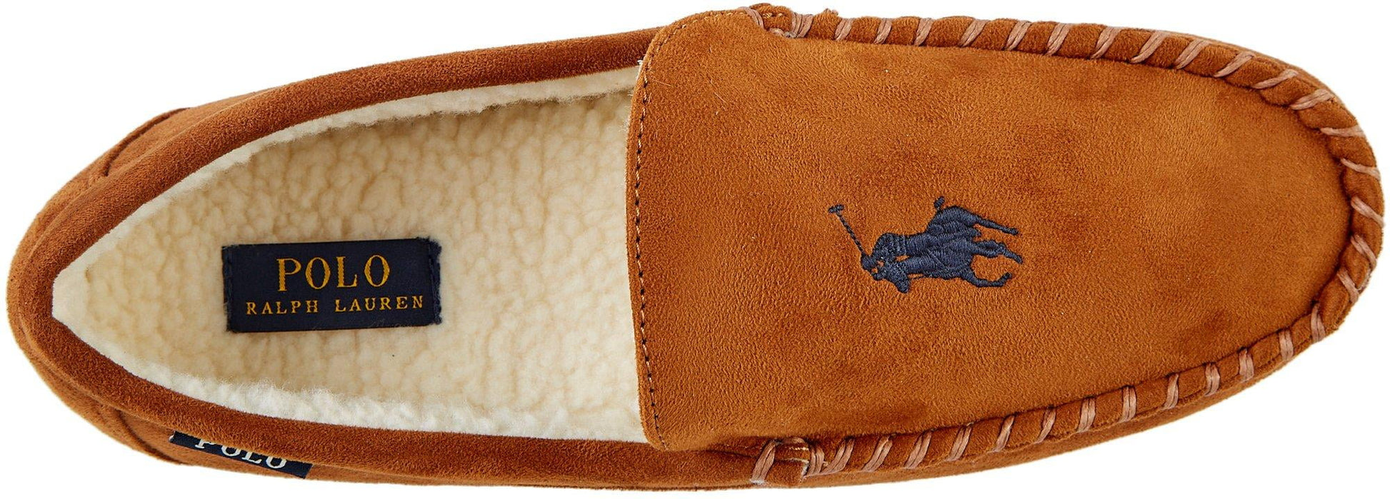 Suede sole|Ralph Lauren; An American classic in the world of fashion| Ralph Lauren designs are timeless and never go out of style.|Slip-On Moccasins; This style of house shoe is made in the classic moccasin style with a lace-free design and a whip-stitch construction around the toe box.|Microsuede Upper; Microsuede is often seen as a performance-based alternative to traditional suede as it is water safe| easier to clean| and lighter than classic suede.