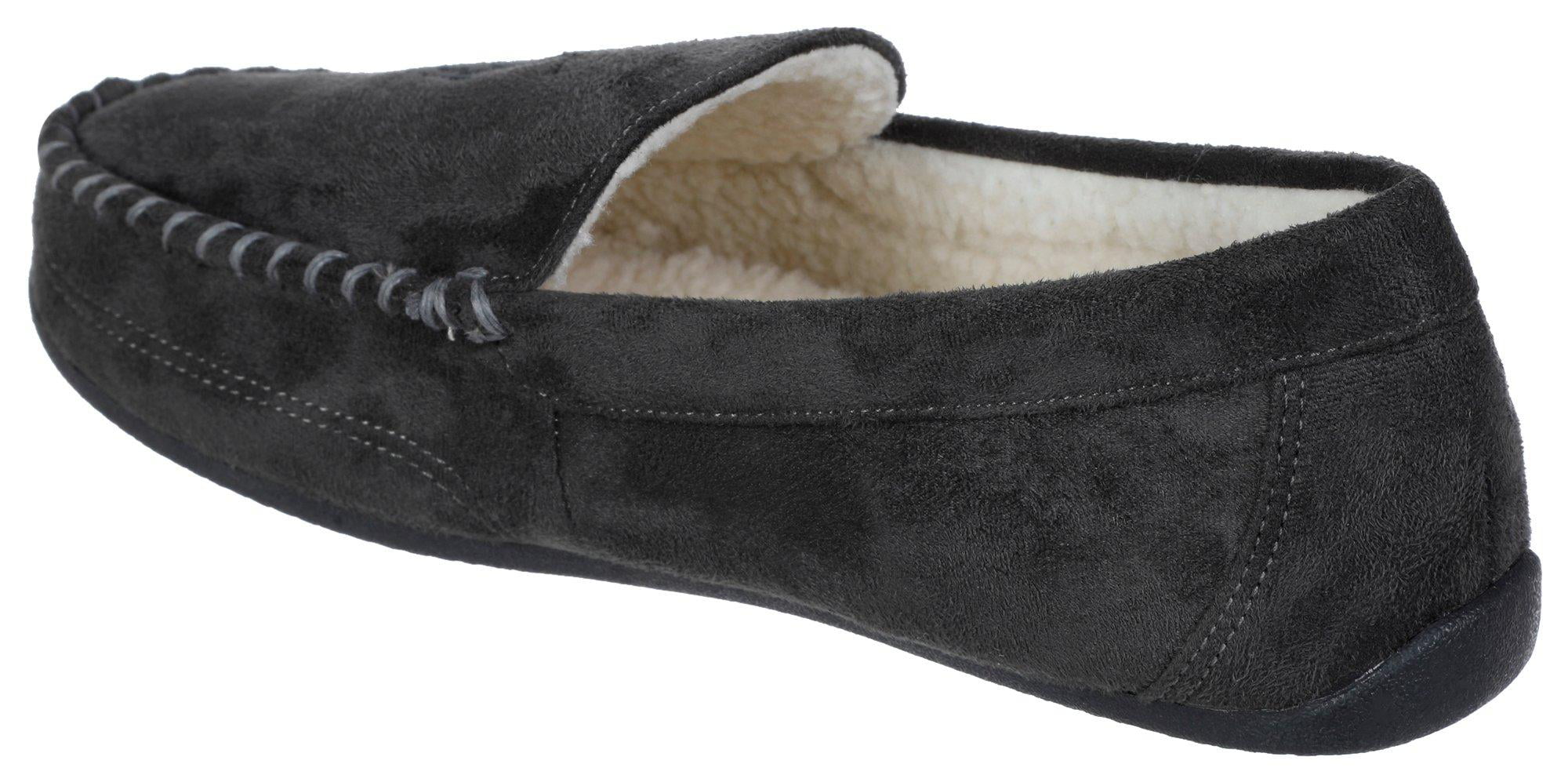Suede Upper Material | Rubber Outsole | Slip-On Design | Comfortable Fit | Round Toe Style | Faux Fur Interior | Padded Footbed | Classic Moccasin Stitching | Logo Detailing | Size 12 | Grey Color'