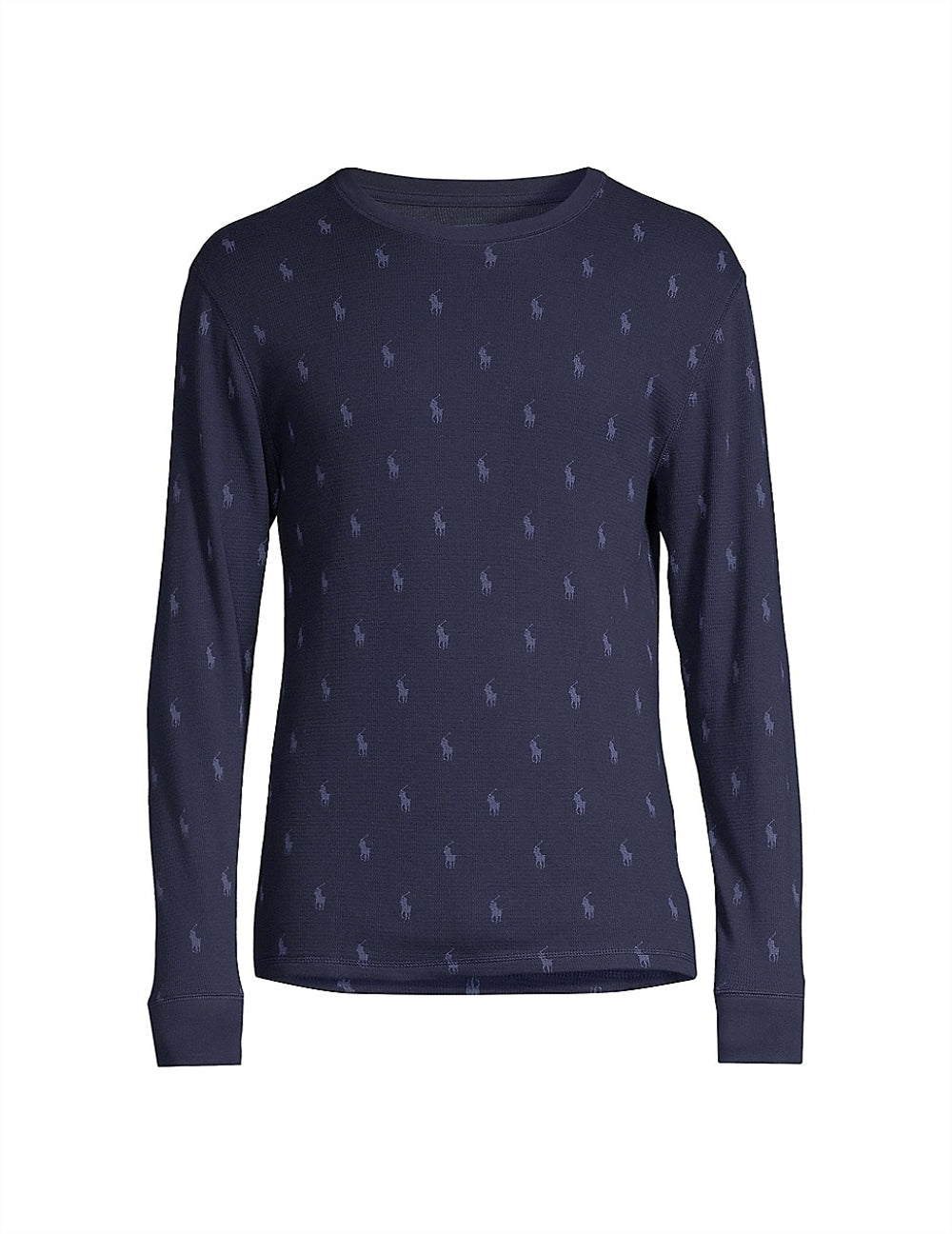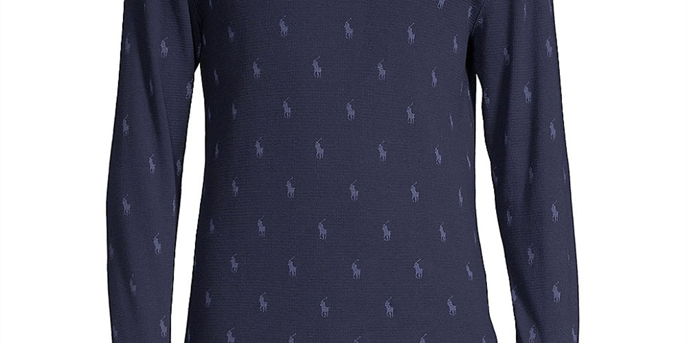 Ralph Lauren Men's Printed Waffle Knit Thermal Pajama Shirt Blue Size Medium