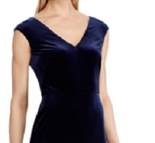 Ralph Lauren Women's Fluted Lace Inset Velvet Dress Navy Size 16