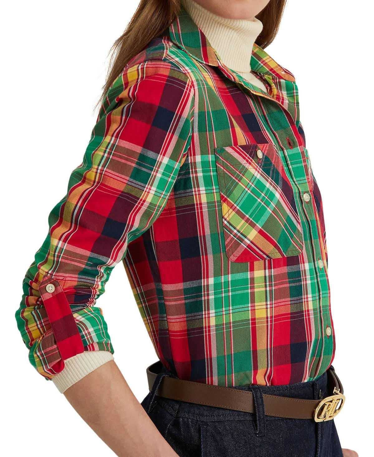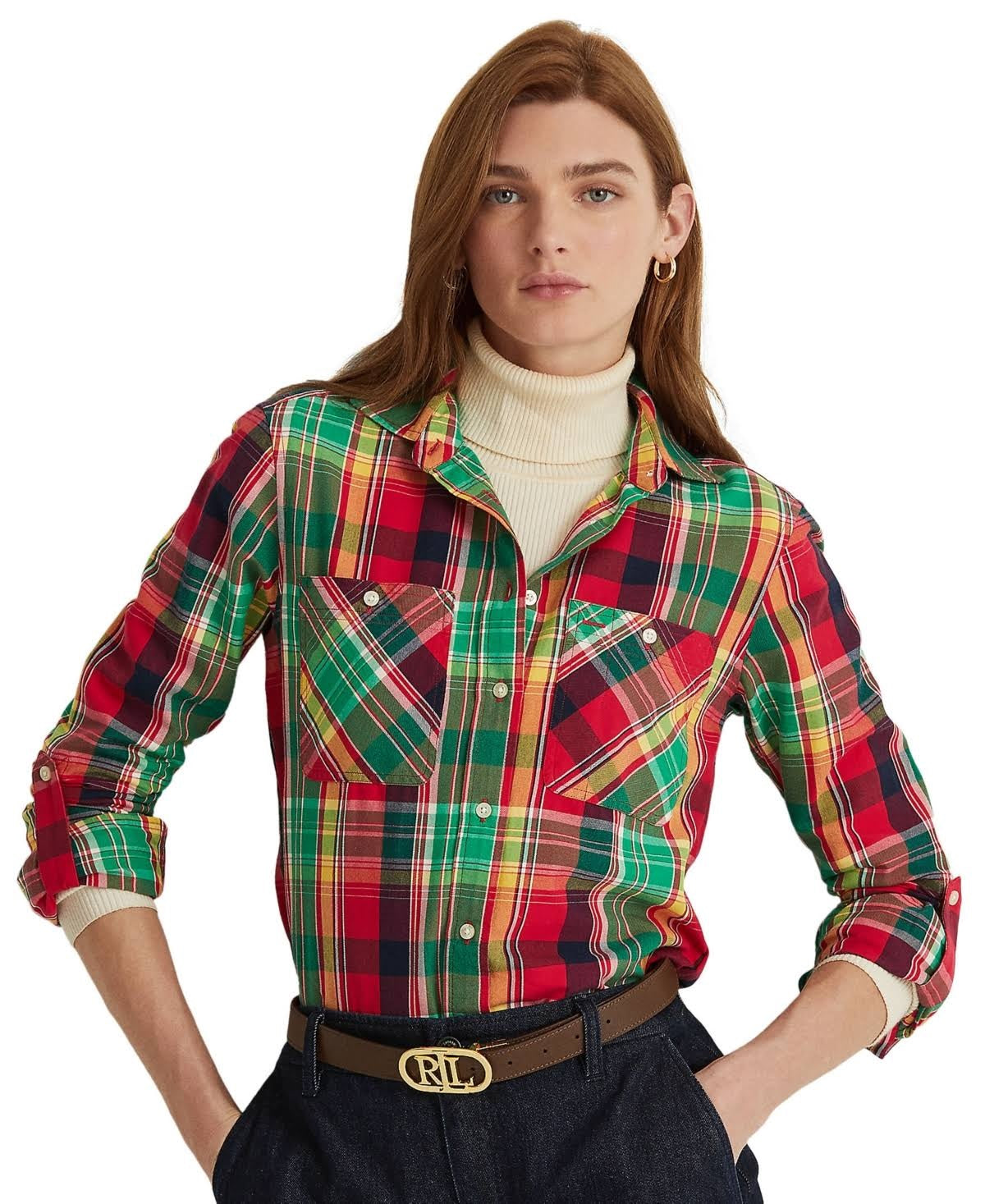 Ralph Lauren Women's Plaid Cotton Twill Shirt Red Size 3X