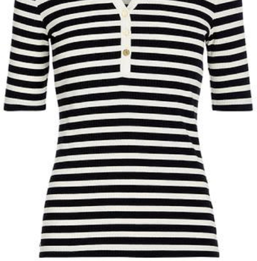 Ralph Lauren Women's Striped Cotton Blend Henley Tee Black Size X-Small