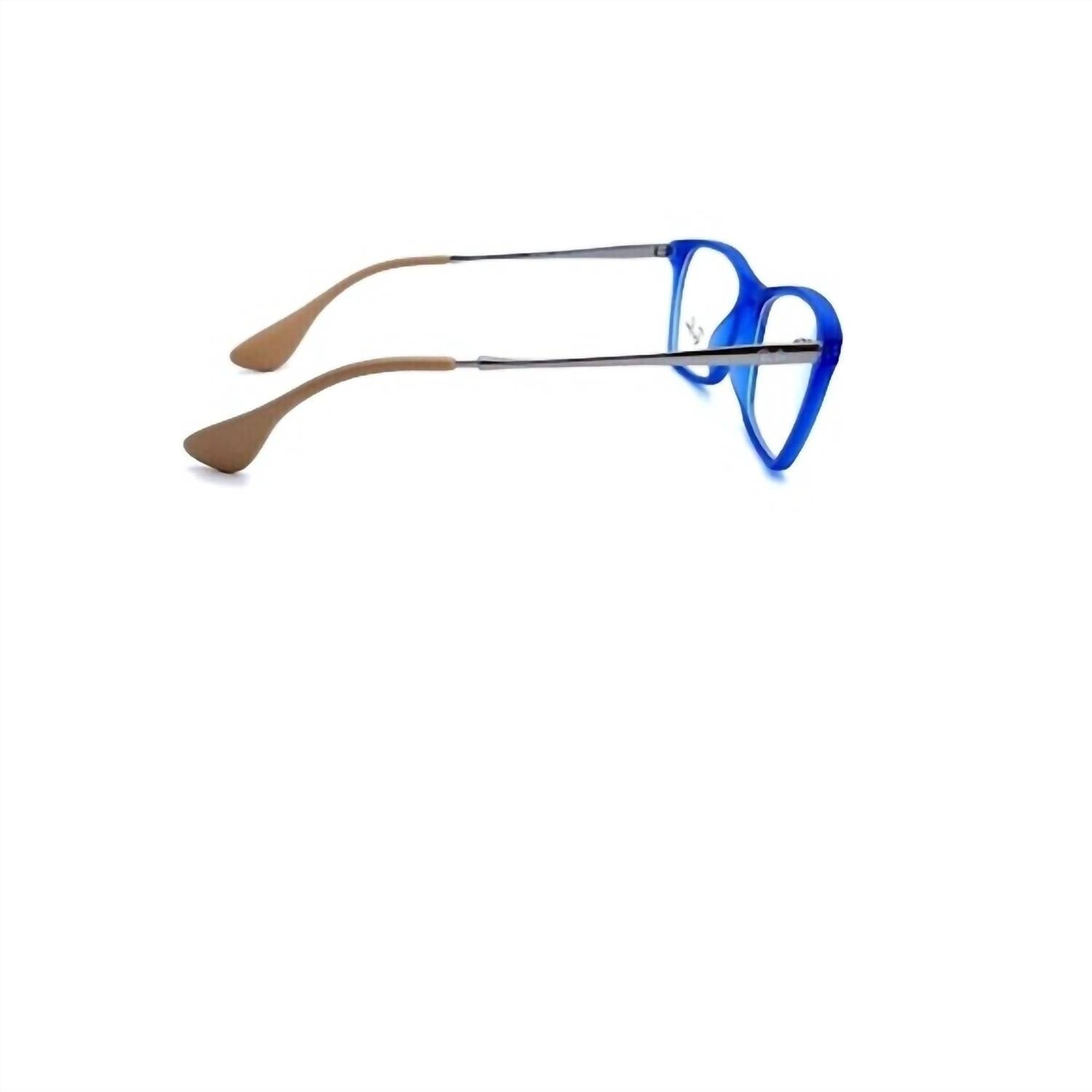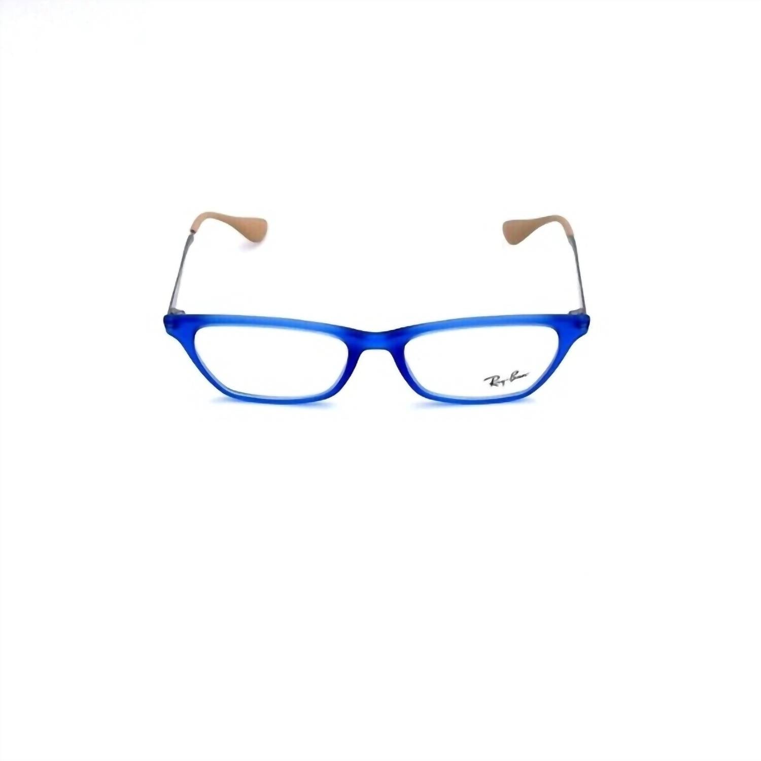 Introducing the Unisex Rb7053 Eyeglasses by Ray-Ban, designed in a sleek blue color for a modern look. These square-style eyeglasses feature a lens width of 52 mm, an arm length of 140 mm, and a nasal bridge of 17 mm. Perfectly blending style and functionality, these frames ensure a comfortable fit for everyday wear. Made with meticulous craftsmanship, these eyeglasses embody Ray-Ban's iconic design and quality.