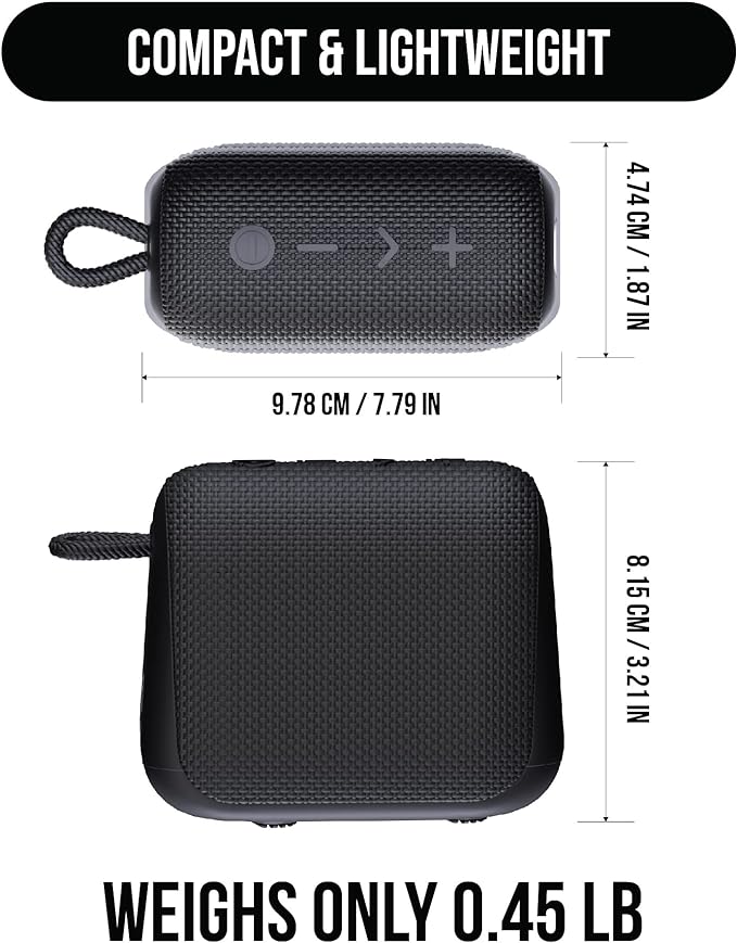 ON-THE-GO: This Small and Compact speaker can be brought with you anywhere and everywhere. It fits in your backpacks, handbags and duffels filling your day up with music when you need it. Magnetic Feet on the bottom of the speaker, so you can put your everyday essential anywhere you'd like! | DURABLE: With IP67 Water Resistant and Dustproof Technology, you can count on your earbuds to stay resistant and resilient in all types of weather. Resistant to light splashes and sprays, you can even use these everyday speakers in the shower next to you! Dust and water are no match for this tough-as-nails speaker. | MULTILINK: TWS Technology - Get multiples of your Everyday Speaker so that you can completely deck out your space with a surround sound system. You can connect two speakers together and play the audio from the speakers at the same time! Fill up spaces from the office, home, and gym with high fidelity tunes that will make your day a little bit brighter | LONG LASTING: Get up to 11 Hours of Playtime with this compact speaker! Connect your speaker to any Bluetooth enabled device seamlessly , with Bluetooth 5.0 you will be able to connect your speaker easily and hassle free. | PORTABLE: These Ultra-Light Weight Speakers are only .45 lbs around 7 oz. You will receive the speakers in a sleek and silky box, charging cable, and a handy manual with clear and easy instructions!