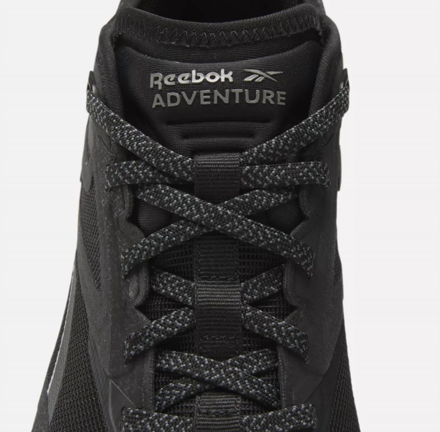 Introducing the Reebok Nano X3 Adventure Training Shoes, designed for the ultimate outdoor fitness experience in Core Black. These water-resistant training shoes feature a lace-up closure and a round toe, offering durability and style for any terrain. The padded collar, textile lining, and Floatride Energy Foam footbed ensure superior comfort and support, while the Vibram ECOSTEP RECYCLE EVO outsole provides excellent grip on wet or rocky surfaces. Perfect for summer hikes, these sneakers align with athleisure trends and are crafted for outdoor adventures.