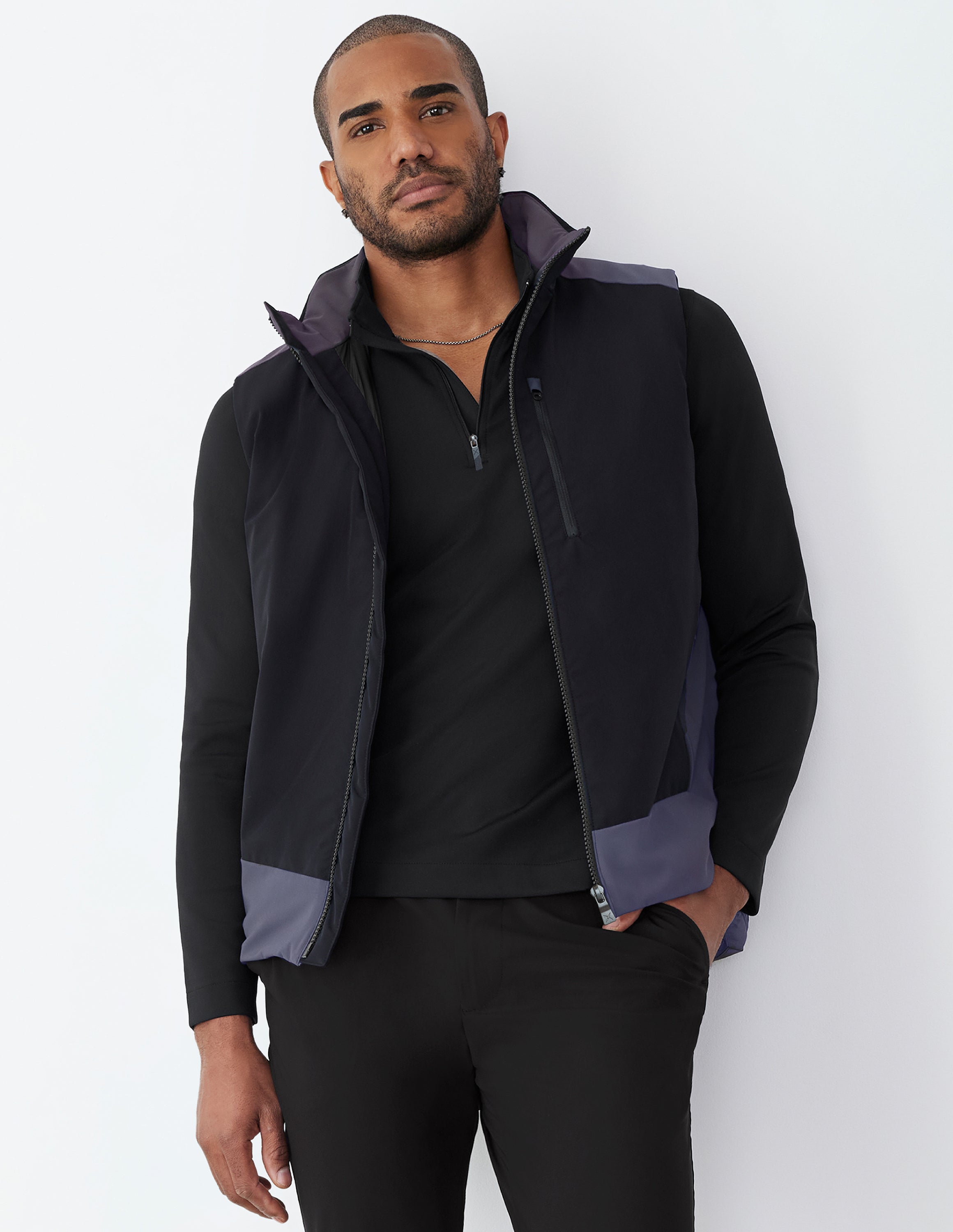 Be brilliant in this reflective and versatile layer with a subtle and stylish colorblock design.