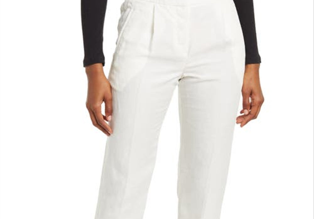 Reiss Lilly Linen Blend Pleated Crop Trousers in White , Size 6 Us