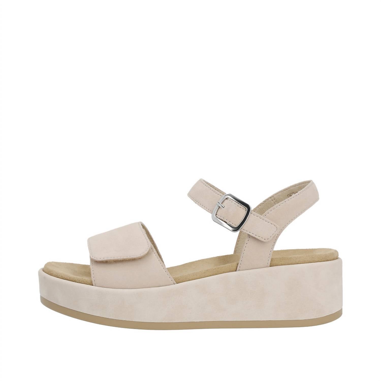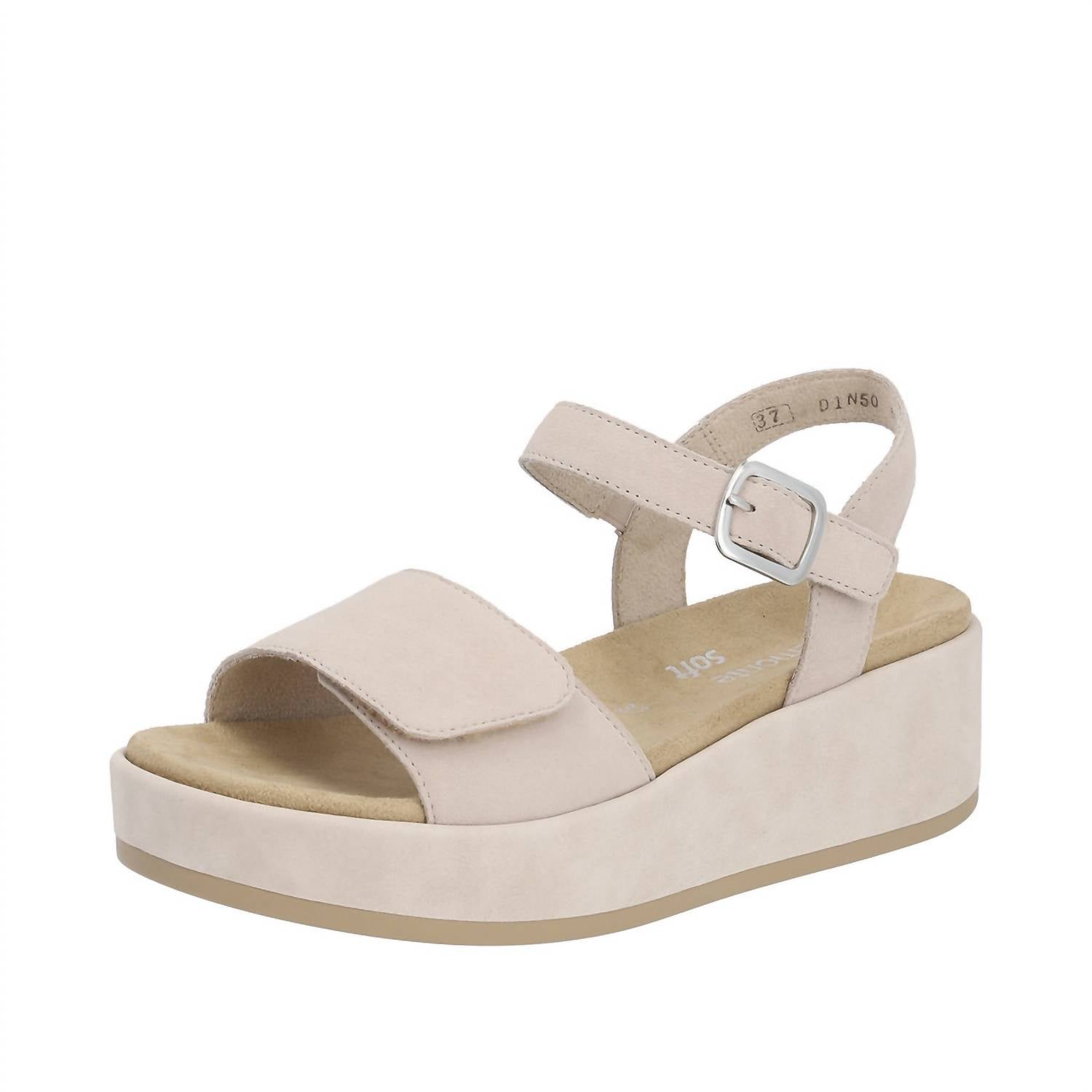 Flowy dresses, cropped pants, and even jumpsuits... this sandal works with them all! Introducing the Jocelyn 50 Sandals by Remonte, a must-have for stylish comfort in Muschel Suede. These women's sandals are crafted from premium suede with adjustable straps for a tailored fit and feature a low, flat heel for easy wear. Equipped with an ultra-light outsole and a padded, removable footbed featuring Lite 'n Soft technology, these sandals provide exceptional comfort all day. Perfect for those warm days, enjoy the blend of fashion and functionality with these chic sandals.