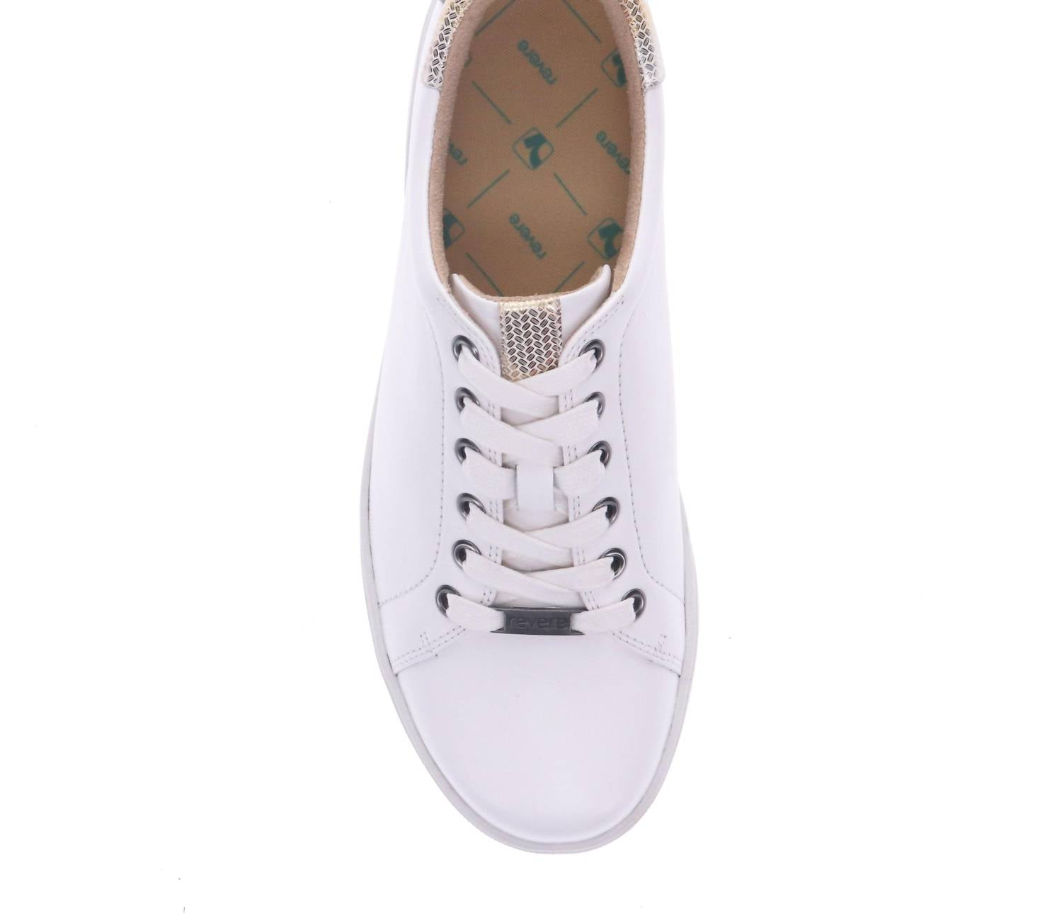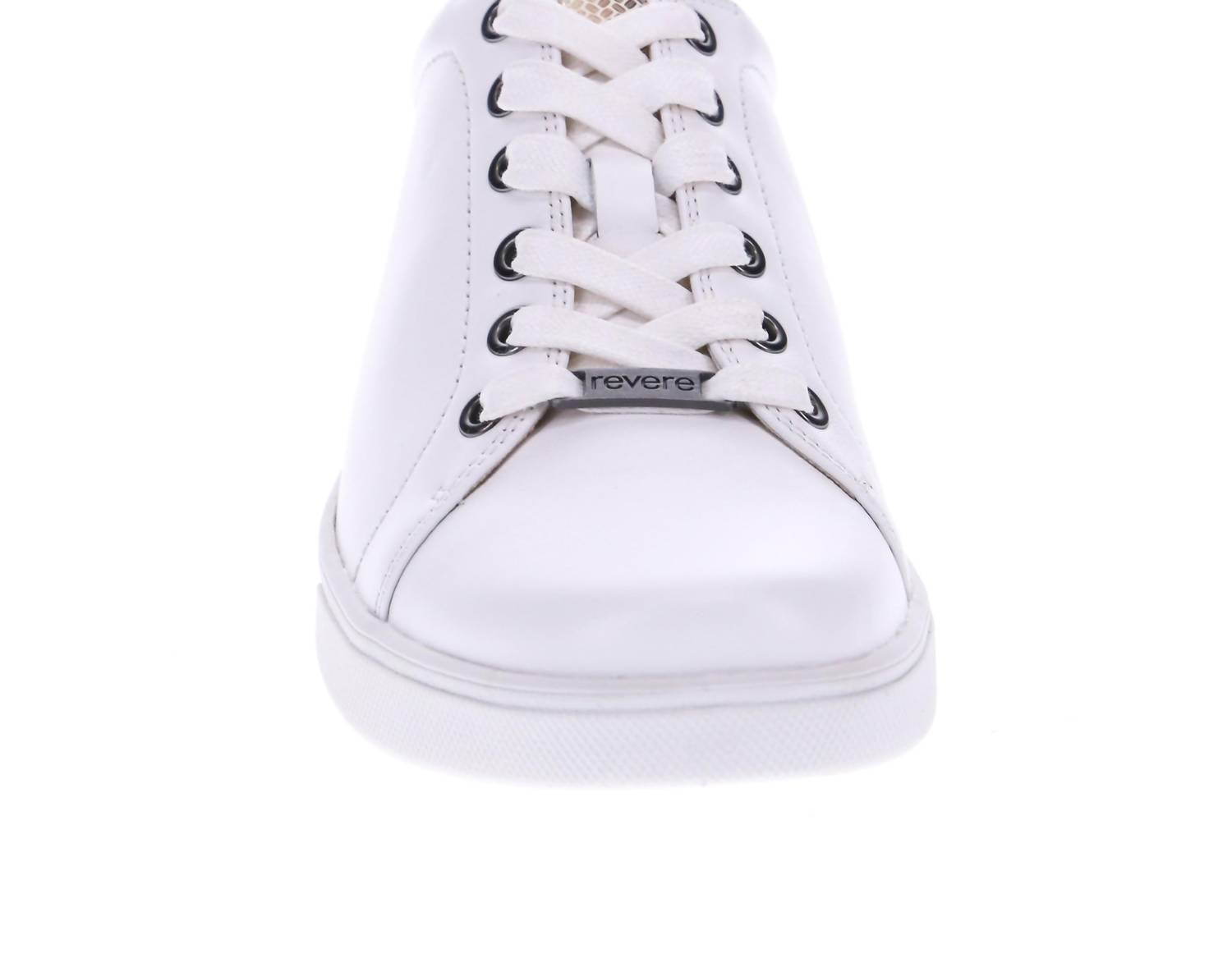 Step into comfort with the Women's Limoges Lace Up Sneaker by Revere, designed for those who need support throughout the day. The sneakers feature metallic hardware details that add a stylish flair to the Coconut color. These wide-width shoes are crafted for all-day wear, providing cushioning and arch support for optimal comfort. If you're a half size, we recommend ordering up for a perfect fit.