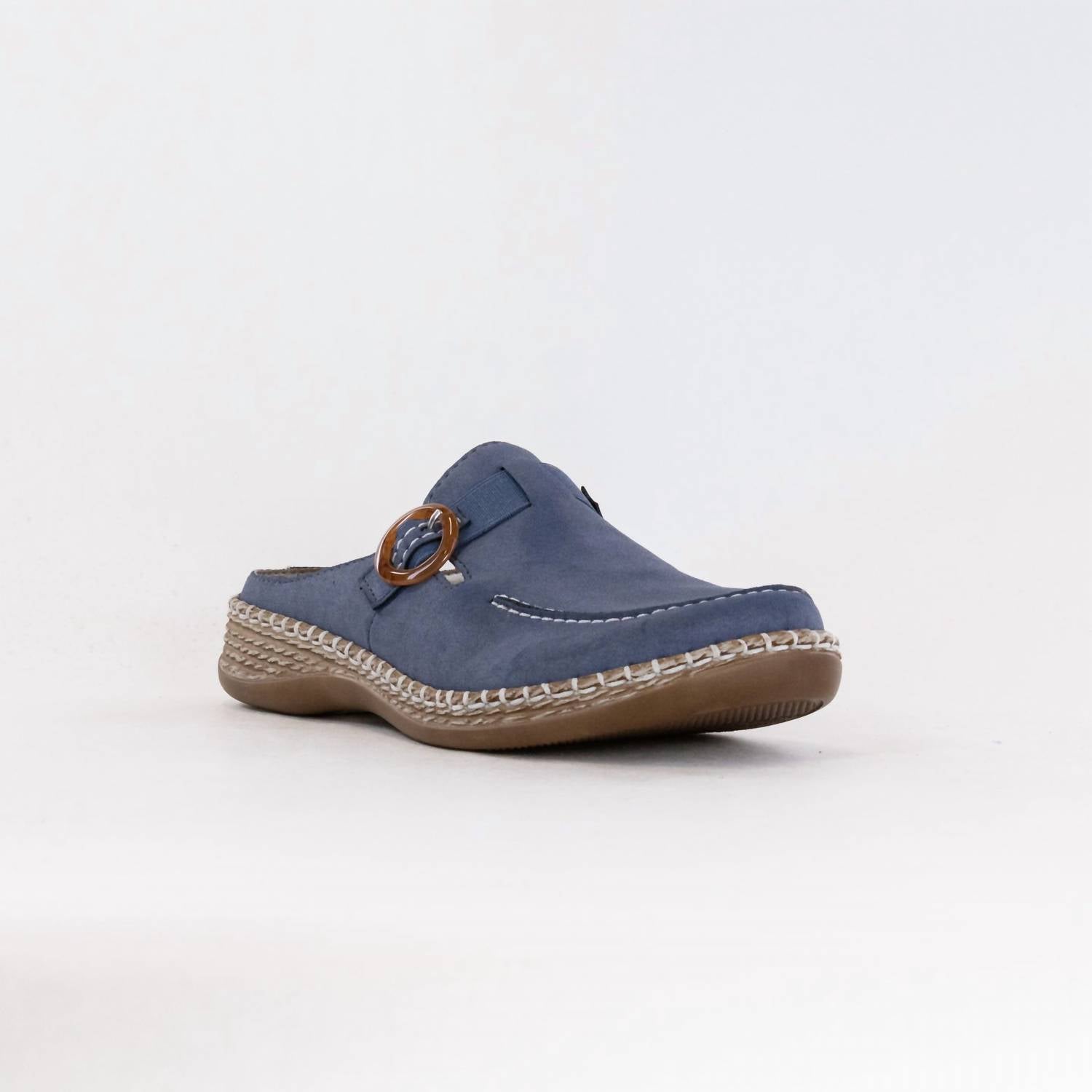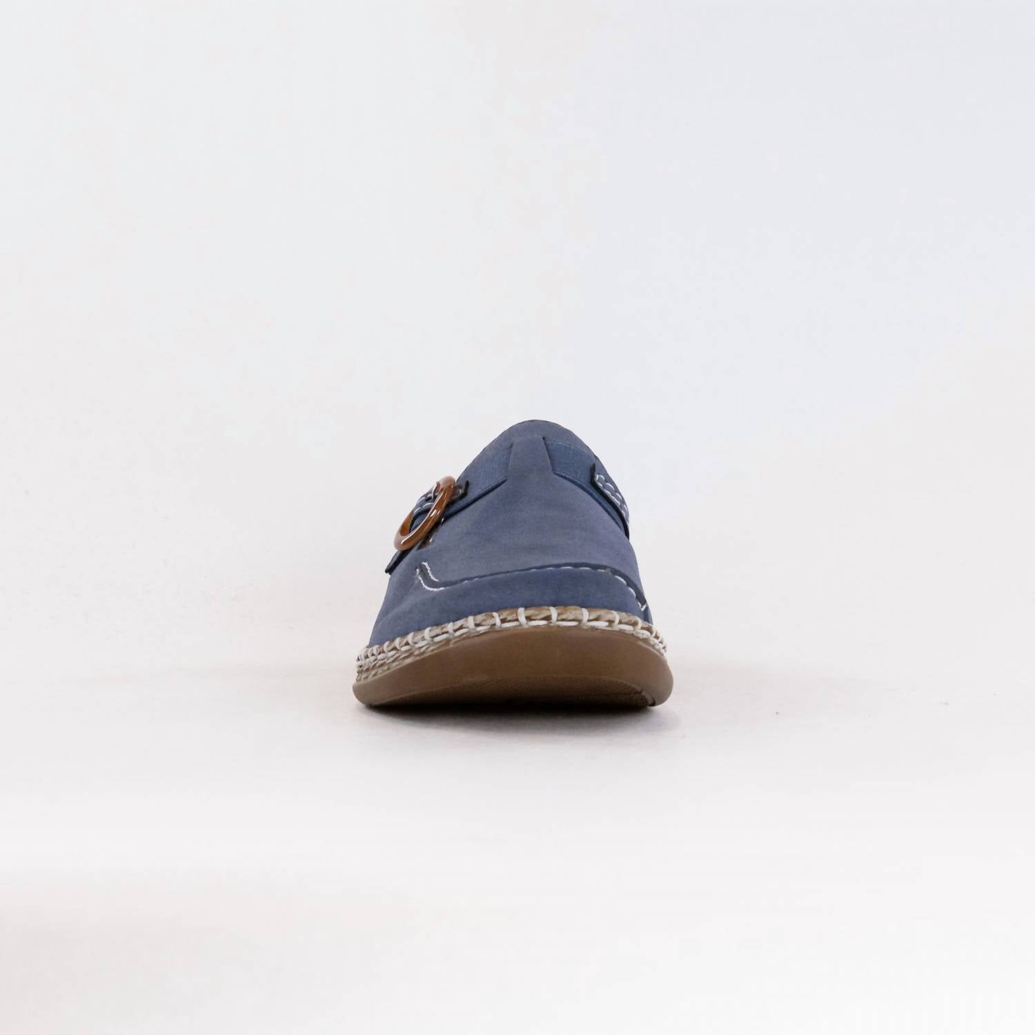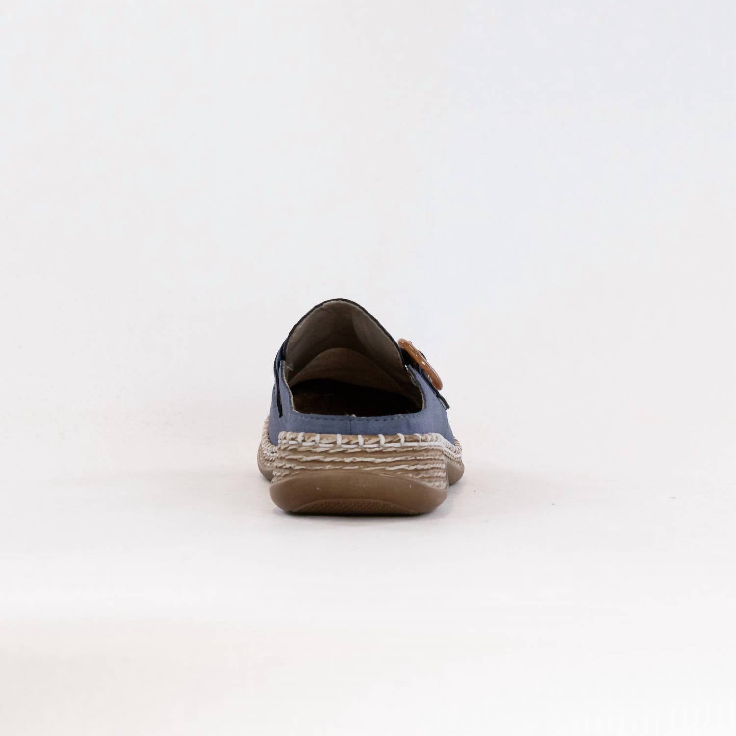 Loafers so versatile you can wear them with just about anything. Step into comfort and style with the Daisy Shoe by RIEKER, the ultimate choice for women seeking both elegance and ease. This flat heel mule in a beautiful jeans color offers a lightweight and flexible feel, perfect for pairing with casual jeans or a flowy dress. Featuring a round toe shape and designed for medium width, this shoe gives you great coverage and takes the pressure off the back of your heel. Ideal for the modern woman, this flat style effortlessly blends smart looks with all-day comfort.