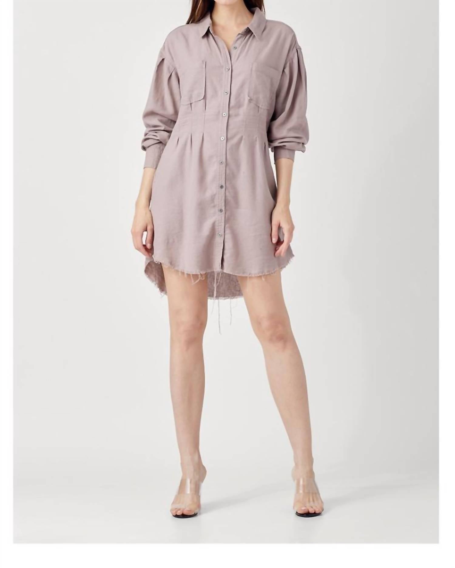 The perfect mini dress for those warmer months.Make sure your look is on point with this stylish Fitted Waist Dress! This figure-flattering fit features a button-up design and distressed hem for a classic, timeless look you'll love. High-low hem. Front pockets. Pin tuck waist. Fabric: 55% linen, 45% viscose. Length 33.75".