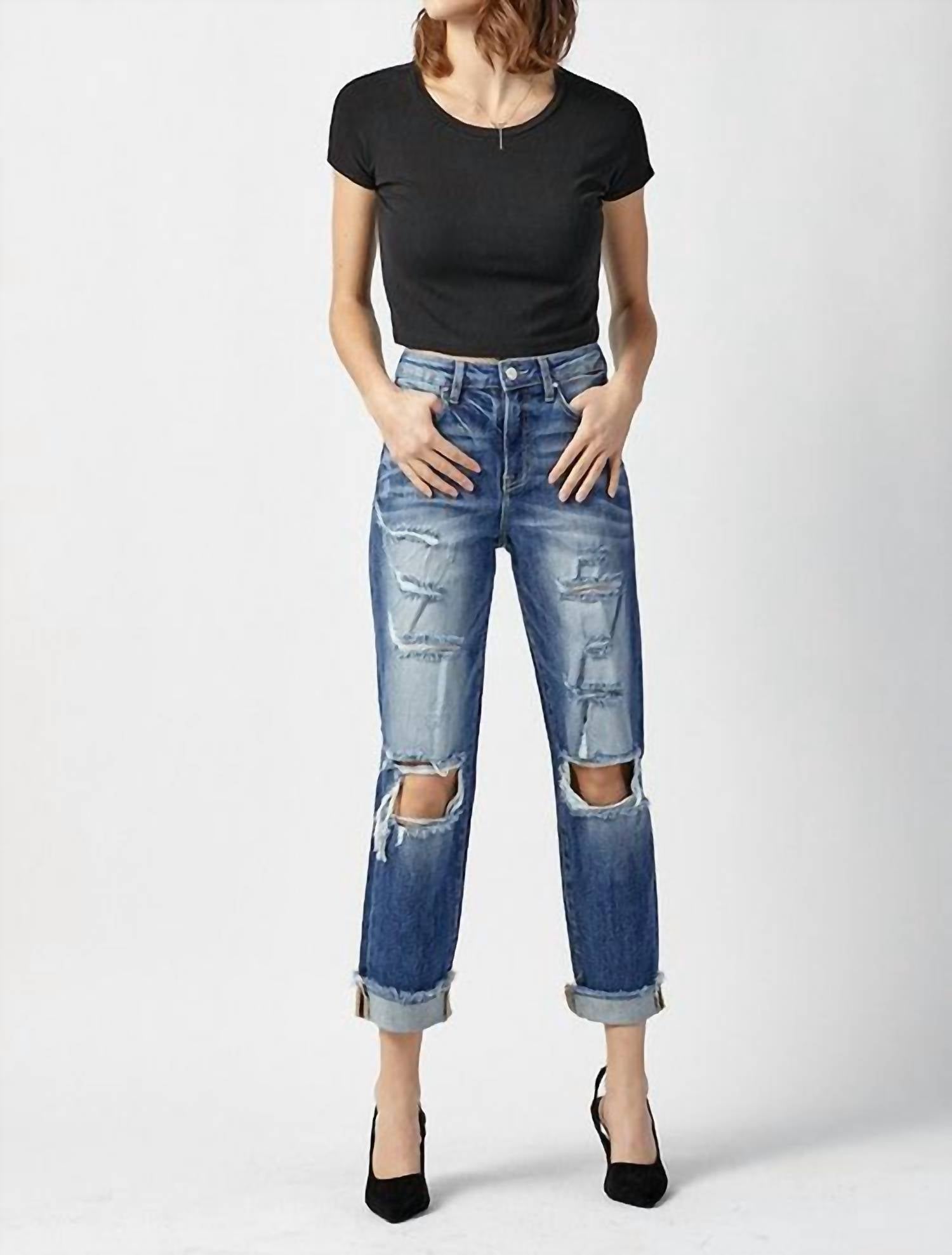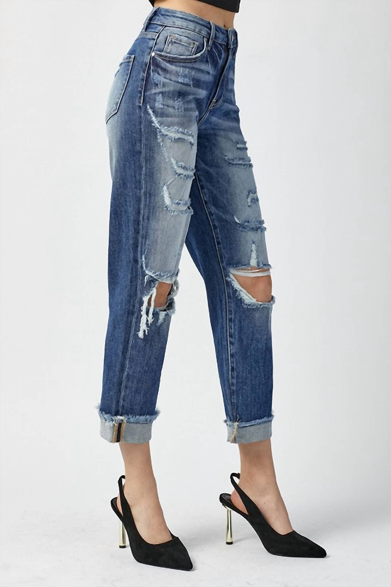 Risen - High Rise Boyfriend Destroyed Jeans