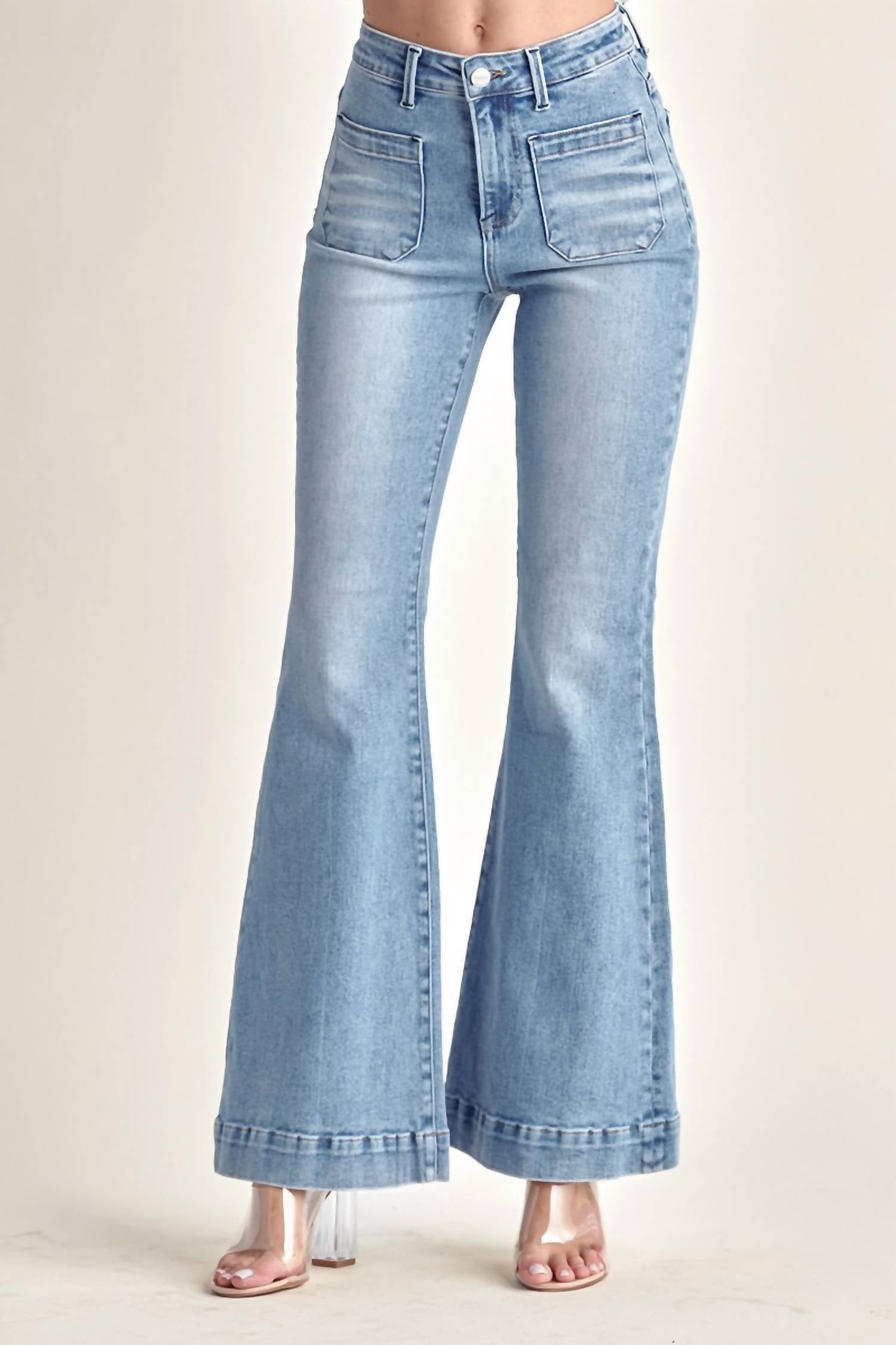 Risen - High Rise Patched Pocket Front Flare Jeans