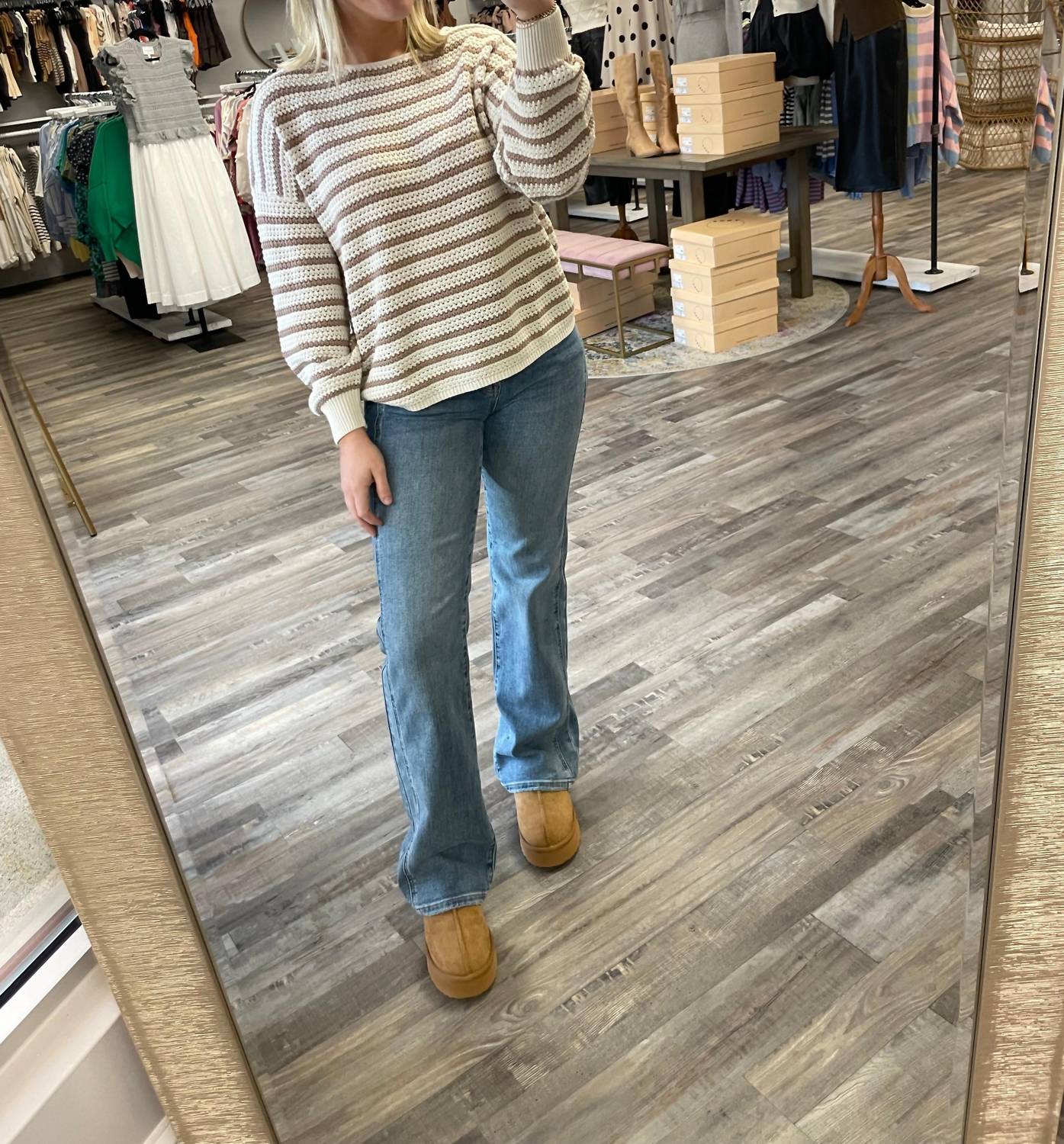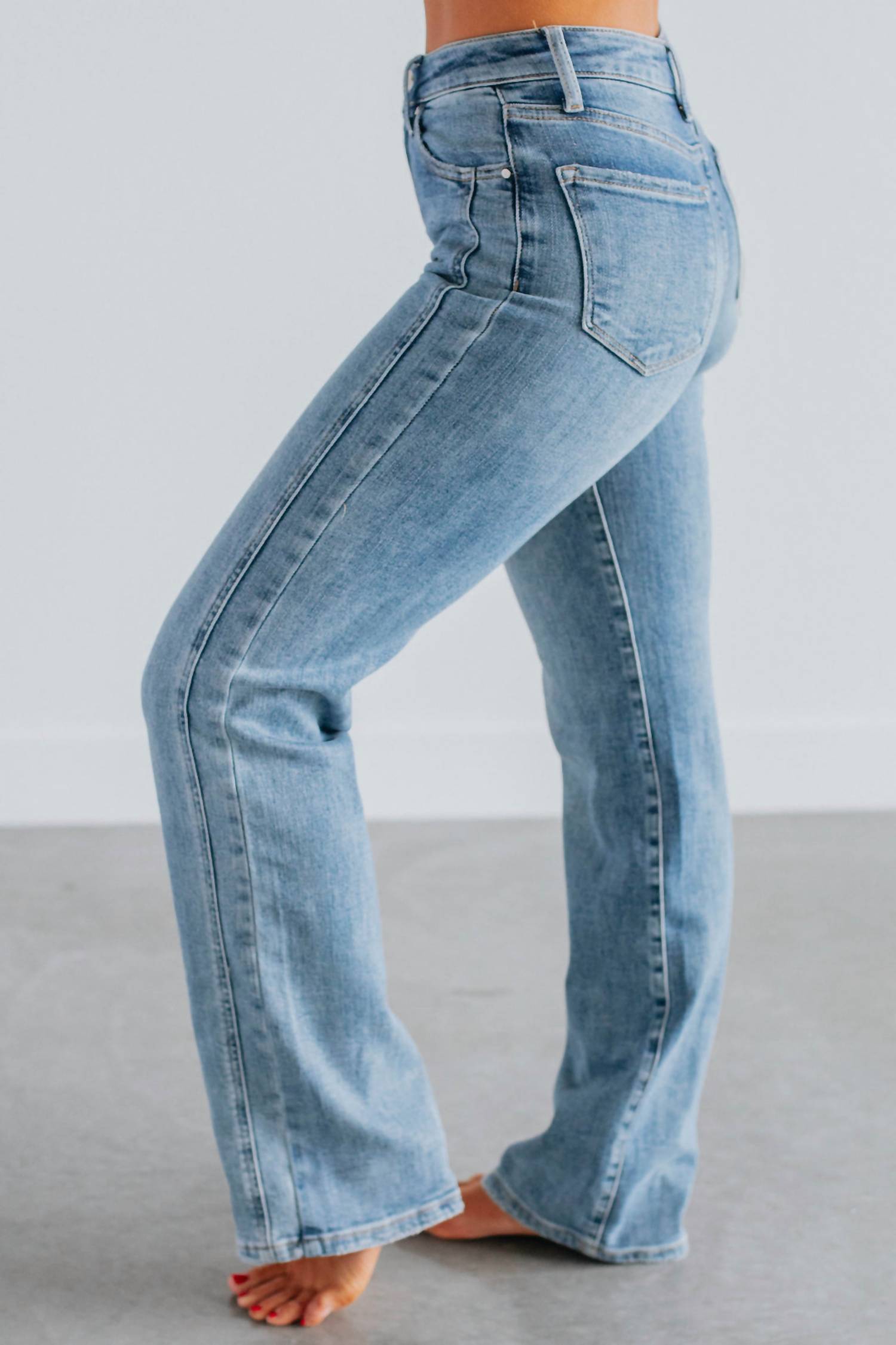 These must-have jeans are fit to perfection. Discover the Mid Rise Side Panel Straight Jeans by RISEN, designed to offer a perfect blend of style and comfort. These mid-rise, medium wash jeans feature a straight leg with unique side panel detailing and provide a textured look. Made from a Cotton Blend, they come with functional pockets and a secure button closure. These jeans are full length and have a stretch that runs true to size, though sizing down is recommended for optimal fit.