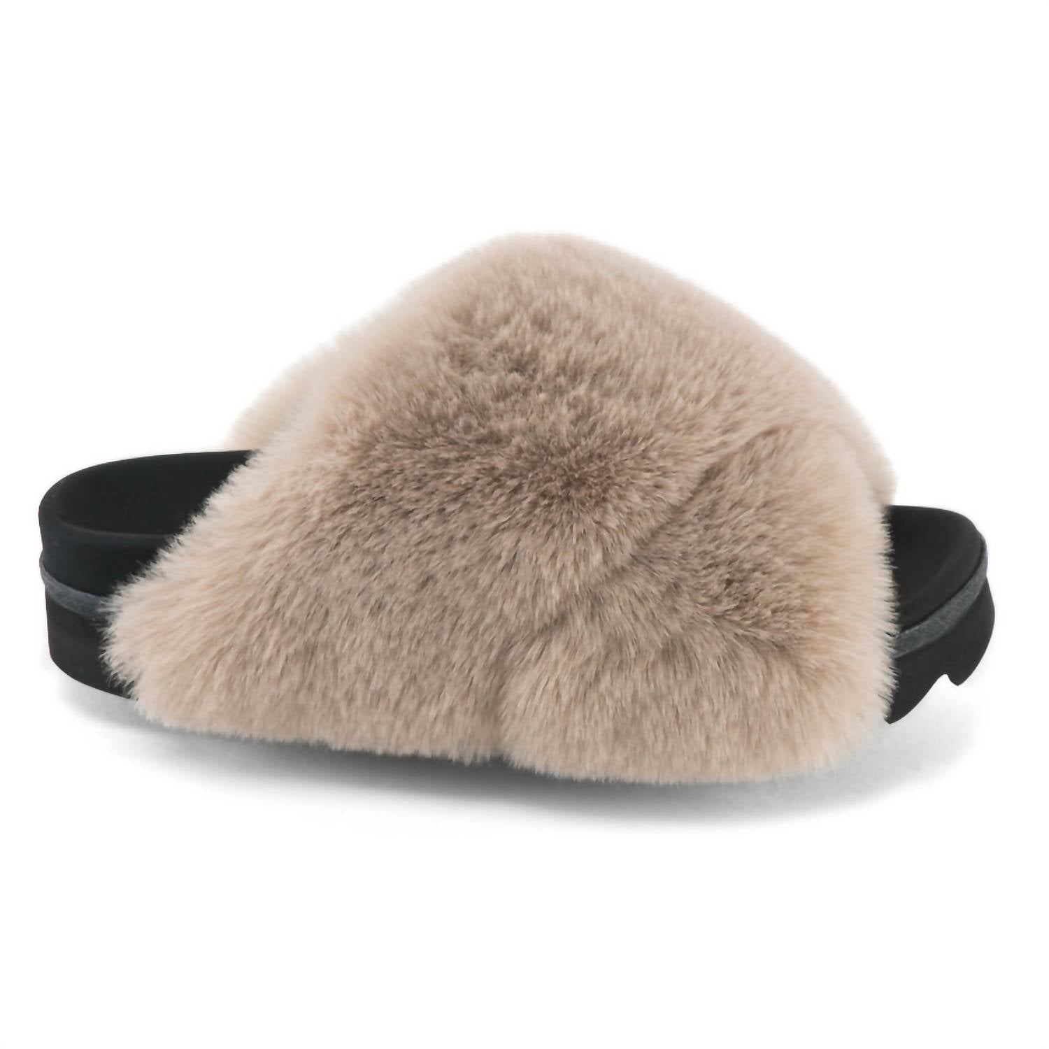 Step into comfort with the Women's Cloud Slippers by ROAM, offering a luxurious feel in sophisticated Nude. Crafted with quality Faux Fur, these slippers boast an open toe design perfect for relaxed lounging. Featuring a medium shoe width and a flat heel under 1 inch, they provide both style and ease for everyday wear. Ideal for women seeking both comfort and chic simplicity in their footwear.